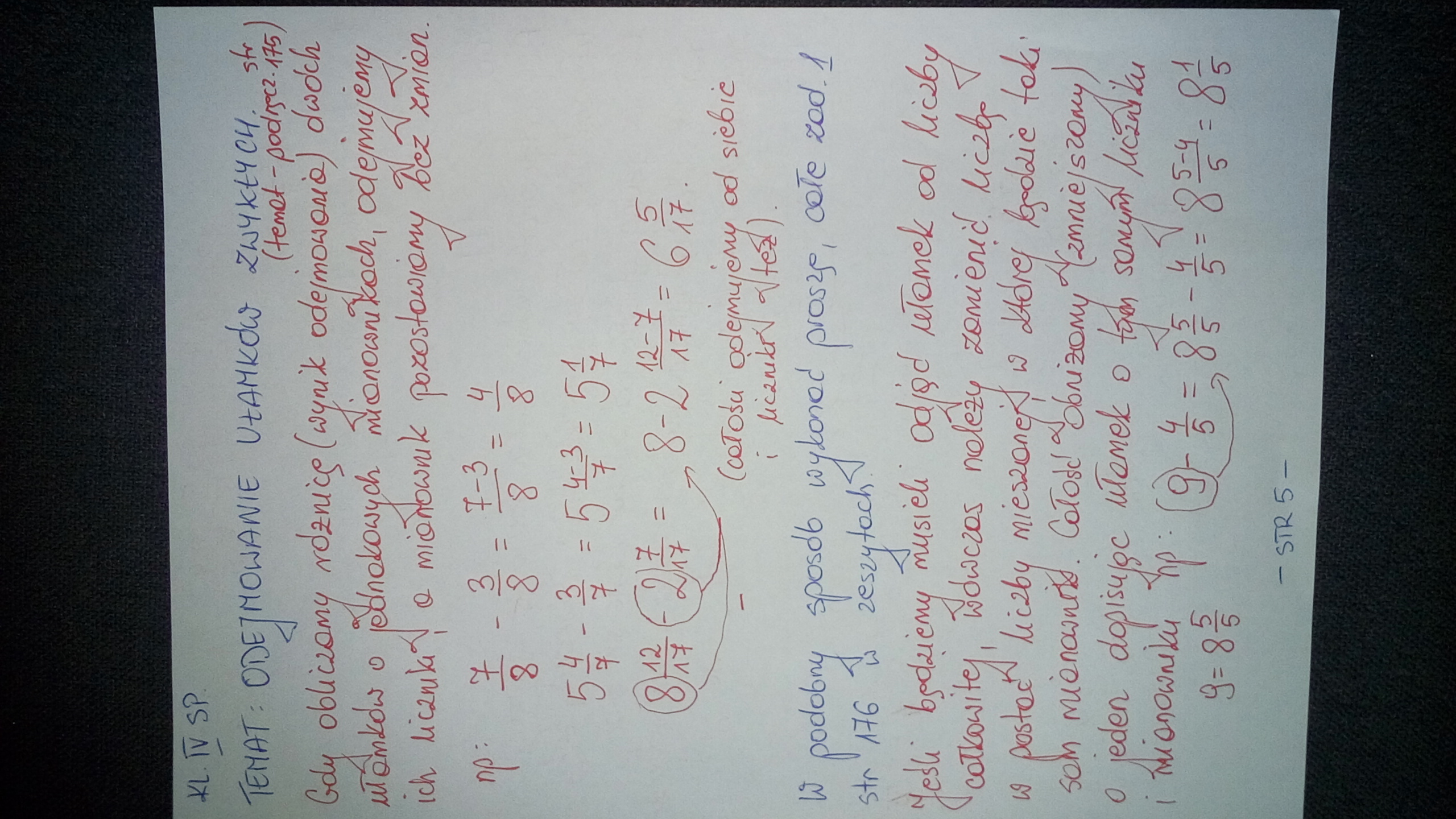 Dzień dobry wysyłam kolejną lekcję do zrobienia dla uczniów klasy IV. Prosze też zajrzeć na e-podręczniki : https://epodreczniki.pl/a/odejmowanie-ulamkow-zwyklych-o-jednakowych-mianownikach/D2xg0e5sJ . Dziękuję.