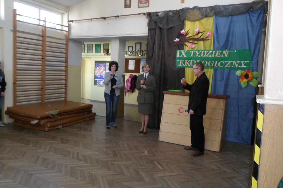 Uroczystego otwarcia IX Tygodnia Ekologicznego w dniu 11 kwietnia 2014 r. dokonał dyrektor szkoły pan Janusz Bieńkowski wypijając szklankę soku owocowego. W ceremonii otwarcia udział wzięła również Pani Leśnik Irena Dziadoń.