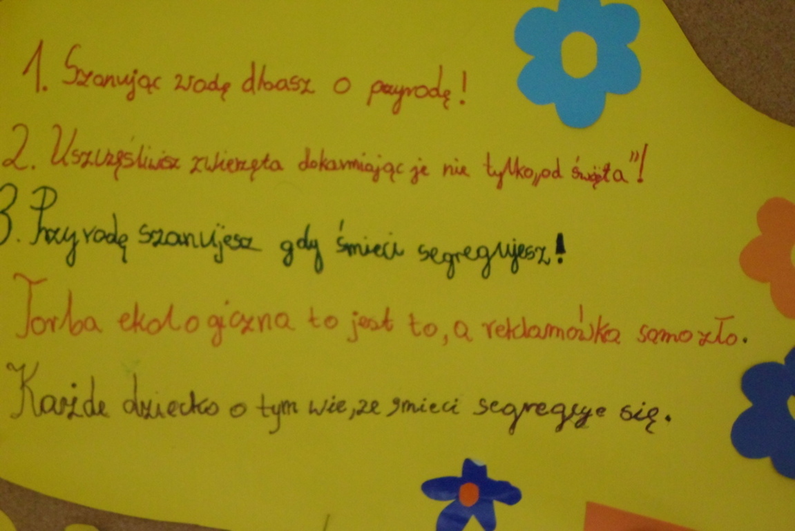 Na uwagę zasługuje fakt włączenia się w akcję wszystkich uczniów, wychowawców, nauczycieli oraz pracowników obsługi pracujących w szkole. Dzięki temu przedsięwzięciu wzrosła świadomość ekologiczna uczniów i ich rodziców. Skorzystało na tym również najbliższe środowisko. Szkoła systematycznie włącza się w zbiórkę nakrętek od butelek, uczniowie segregują śmieci, biorąc udział w programie profilaktycznym ,,Trzymaj formę” dbają również o swoje zdrowie.
