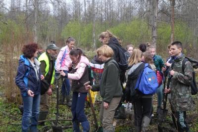 Tego dnia odbyła się niezwykle cenna dla naszego środowiska akcja. Uczniowie klasy I i II gimnazjum zaopatrzeni w szpadle, rękawice i kalosze wyjechali do Leśnictwa Królikarnia (gm.Korsze). Tam pod czujnym okiem Leśników 20 uczniów z wychowawcami klas przystąpiło do sadzenia lasu. Posadzono dwuletnie sadzonki olszy czarnej na powierzchni ok. 0,4 hektara. Wysadzono około 1500 sztuk sadzonek. Po skończonej pracy uczniowie zostali zaproszeni przez leśników na ognisko, gdzie mogli upiec ufundowane przez Nadleśnictwo Srokowo kiełbaski.