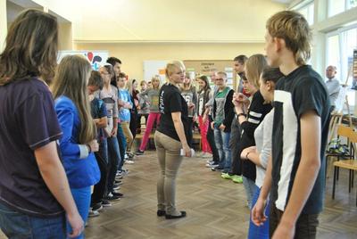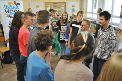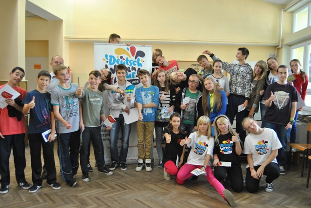 W czwartek 18.09.2014r. gościliśmy lektora języka niemieckiego w ramach projektu Deutsch Wagen Tour z Olsztyna- Panią Magdaleną Iurowską, która zachęciła nas do nauki języka niemieckiego. Pani Magdalenazaprezentowała lekcję otwartą języka niemieckiego dla uczniów klas gimnazjalnych. Animacje językowe i sposób prowadzenia lekcji przez Panią Magdalenę bardzo nam się podobał, tym bardziej, iż za aktywność zostaliśmy nagrodzeni, a nagrody były super.