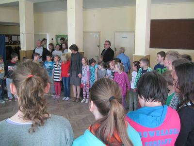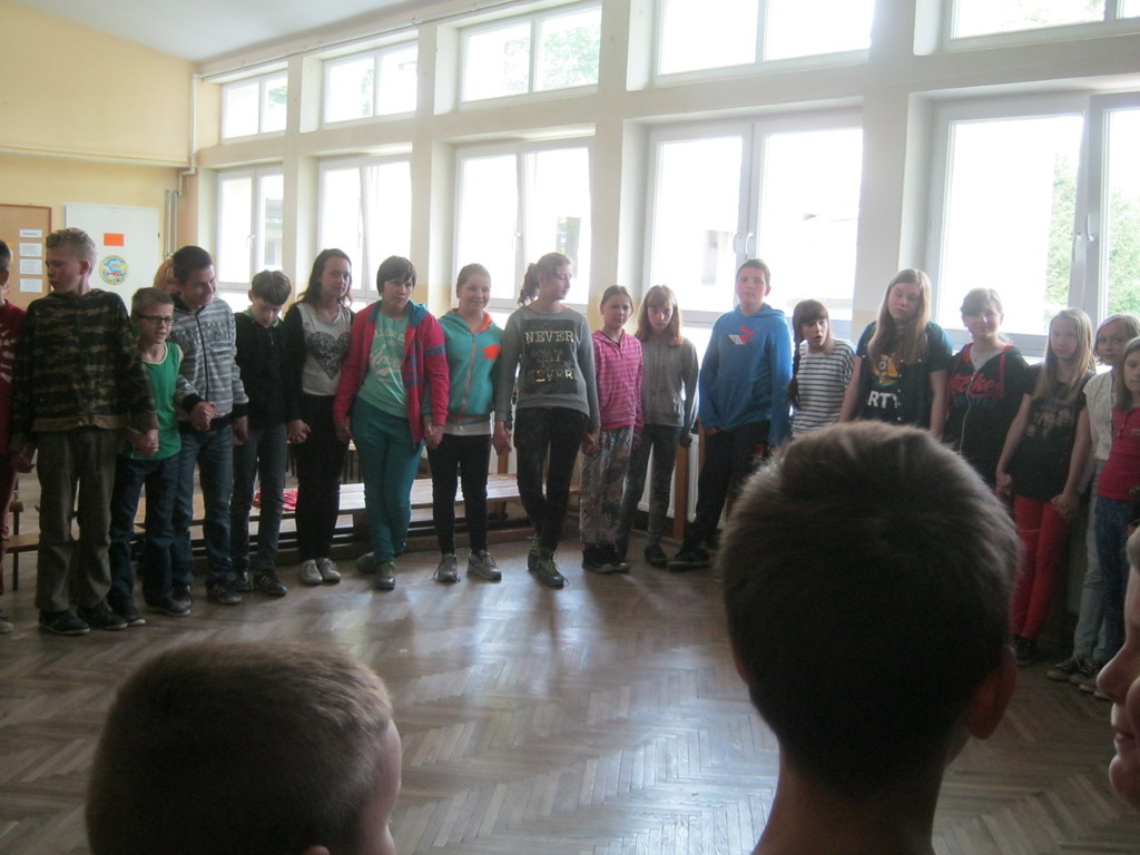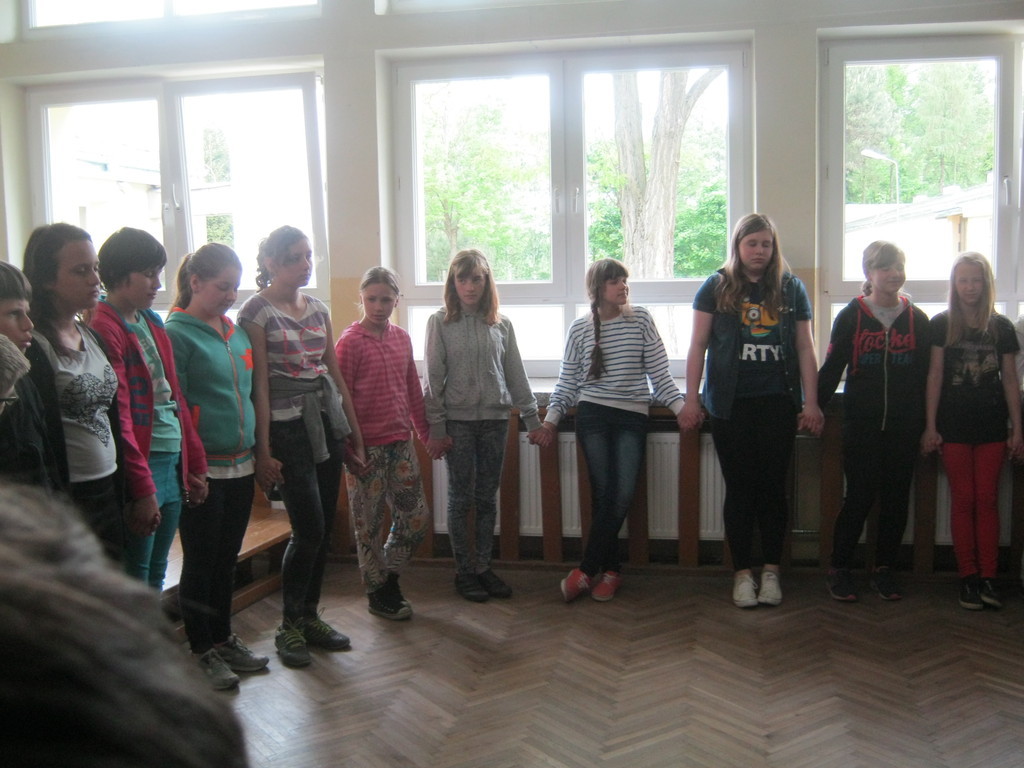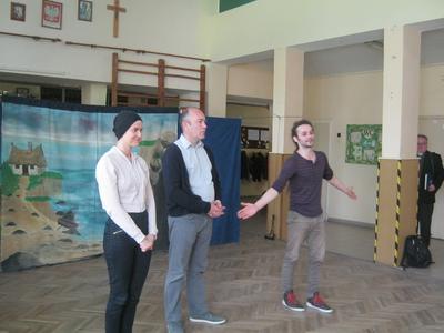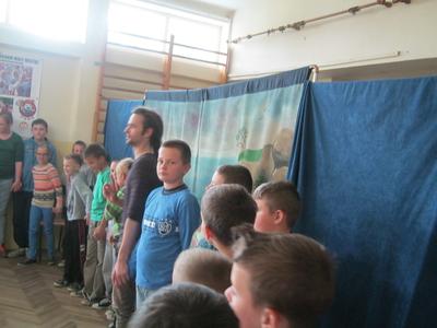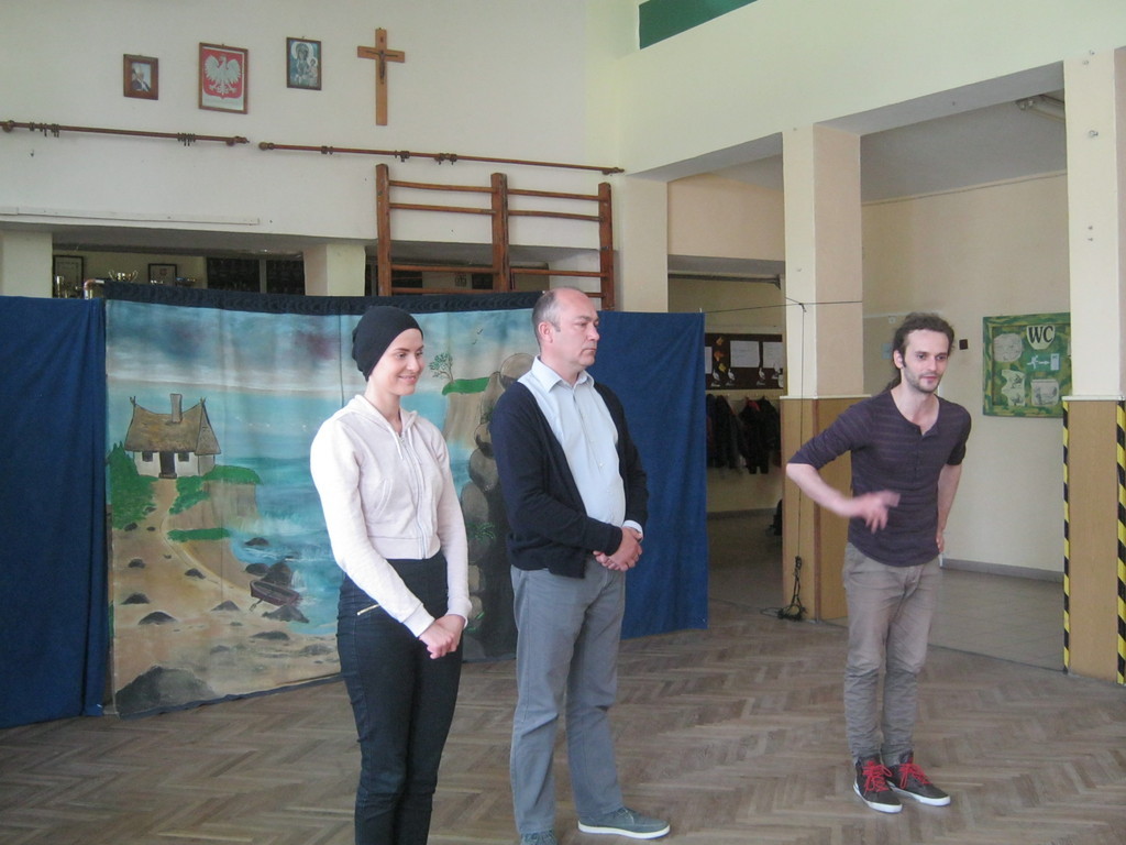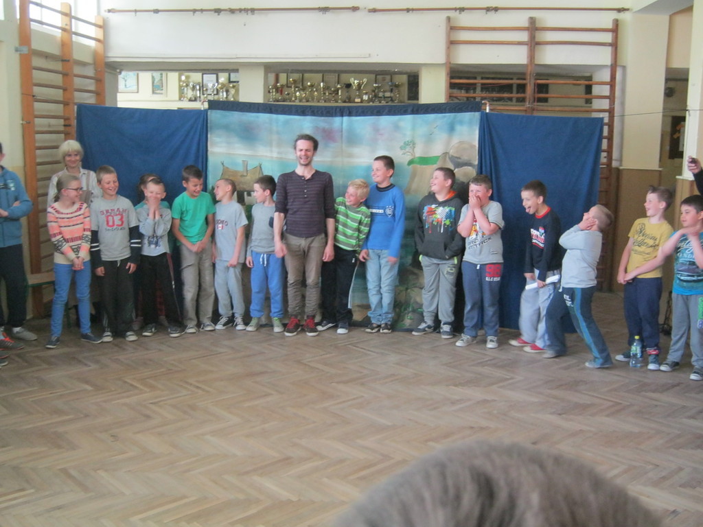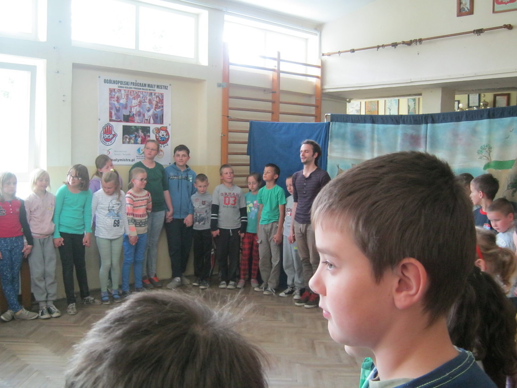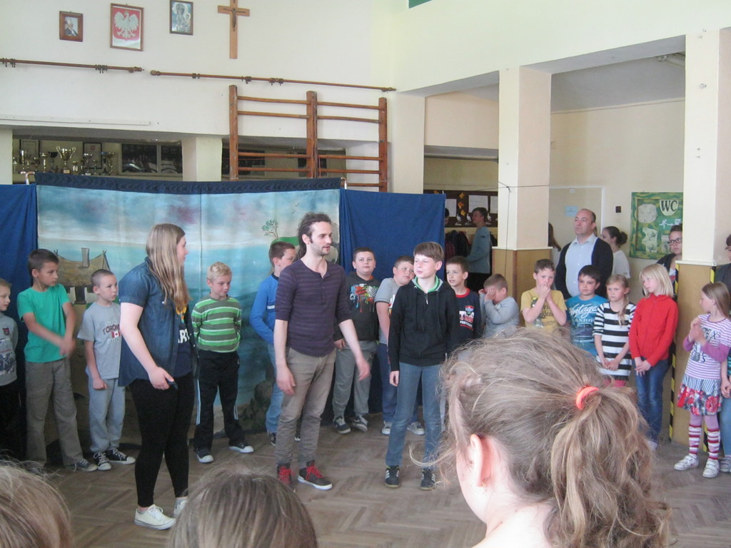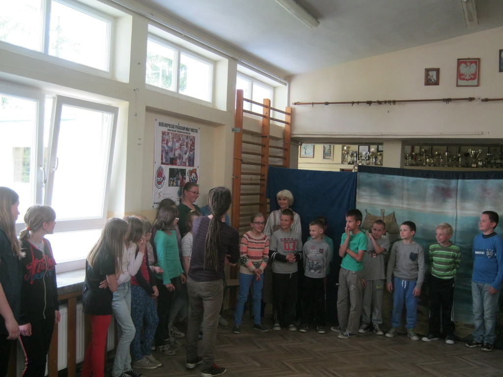 Dnia 27 maja na zaproszenie działającego w Zespole Szkół im. Jana Pawła II w Sątocznie Stowarzyszenia „Animator” przybyli aktorzy z odległego Krakowa, by przybliżyć dzieciom i dorosłym kulturę wysoką, jaką jest teatr. Robili to znakomicie, wykorzystując wszystkie tajniki sztuki aktorskiej, bawiąc się przy tym z oglądającymi przedstawienie dziećmi. Ciekawy temat sztuki (legenda wyjaśniająca pochodzenie soli w morzu), ekspresja wyrazu aktorskiego, prosta, ale wyrazista scenografia oraz interaktywna forma przemówiły do zebranych. Aktorzy zebrali wielkie brawa. Lecz nie koniec na tym. Po krótkiej przerwie zaprosili wszystkie dzieci, nauczycieli i innych dorosłych do udziału w godzinnych warsztatach teatralnych. Ta część spotkania z aktorami teatru ART.-RE okazała się jeszcze bardziej atrakcyjna. Najpierw prowadzący warsztaty aktor – pan Mariusz przybliżył krótko uczestnikom spotkania niektóre pojęcia z teorii teatru, jego odmian, a potem zaczęła się prawdziwa zabawa. Warsztaty ruchowe, mimiczne, słowa, gest sceniczny w wykonaniu uczniów, ale pod okiem i z fachowymi uwagami pana Mariusza. Chętni byli wszyscy. Śmiech, wrzawa, oklaski, radość, zadowolenie – same pozytywne emocje wzbudzał swoimi pomysłami prowadzący warsztaty aktor. Nikt z obecnych także dorosłych, nie pozostał obojętny na dziedzinę sztuki, jaką jest teatr.