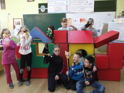 W naszej szkole uczniowie klasy III Szkoły Podstawowej zorganizowali małą inscenizację pacynkową pt. "Brudas i kotki".