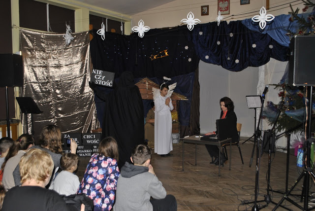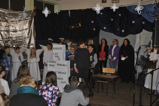 W tym dniu klasa IV wraz z rodzicami przygotowała jasełka pt. "Betlejem jest w nas". Wystąpił także szkolny zespół muzyczny, wszystkie klasy zaśpiewały wybrane kolędy. Oto kilka zdjęć z tego wydarzenia.