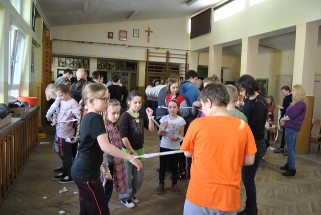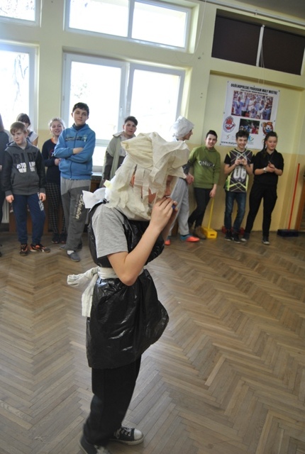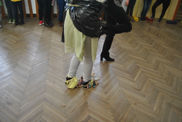 Następnie cała społeczność szkolna bawiła się na naszym "Śmiecioturnieju". Konkurencję jak zwykle zaskakujące, "zabawa na 102".