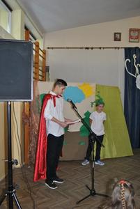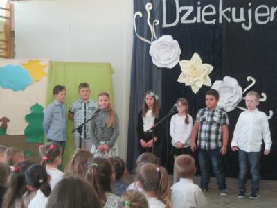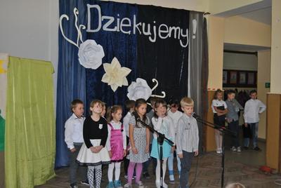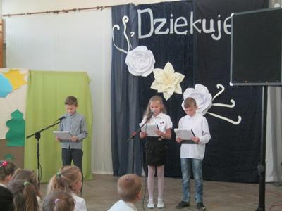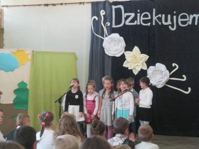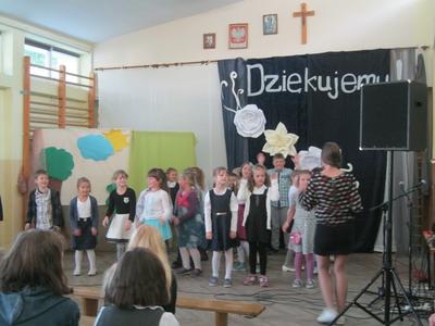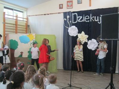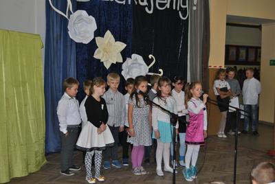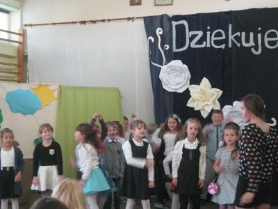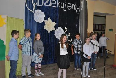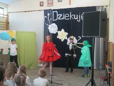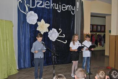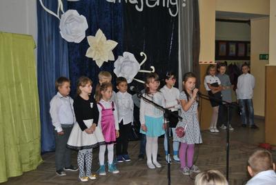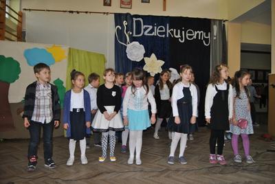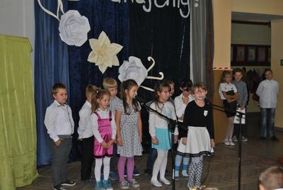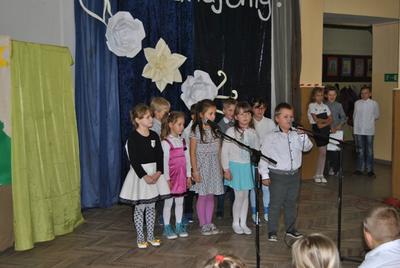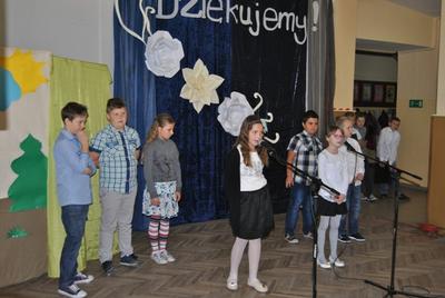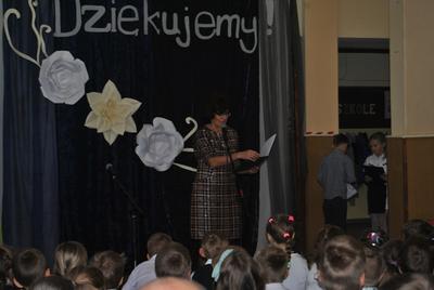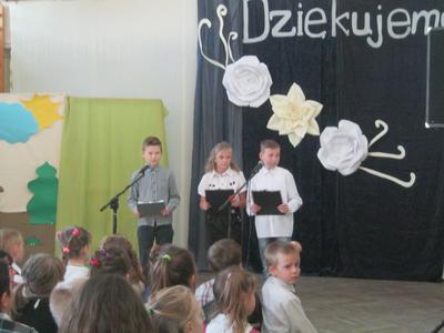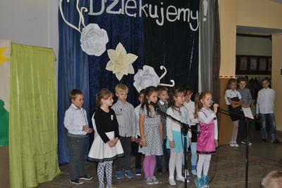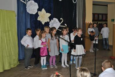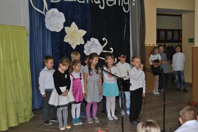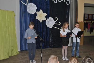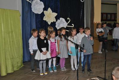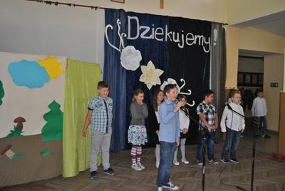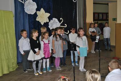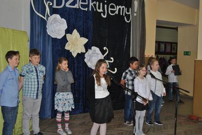 Był pomysł, a potem jego świetne wykonanie! Bardzo dobrze przygotowani młodsi i starsi wykonawcy – uczniowie kl. II – III SP, klasa V oraz Samorząd Uczniowski SP i Gimnazjum w Sątocznie na tle estetycznej, urokliwej dekoracji sceny według pomysłu p. Joanny Duryło.