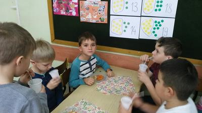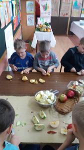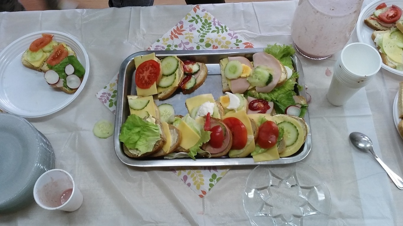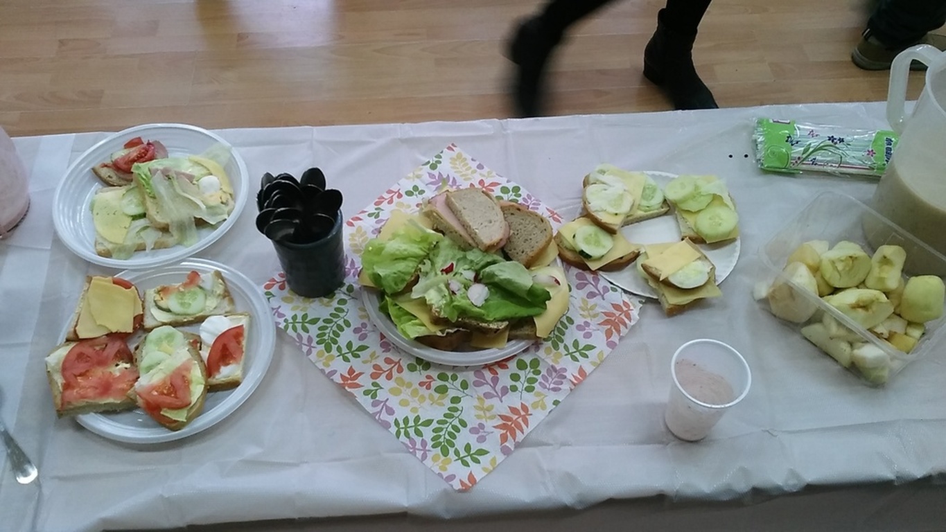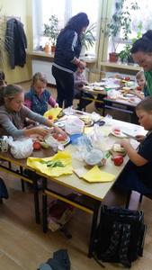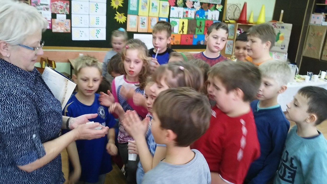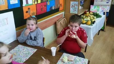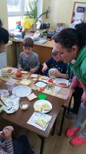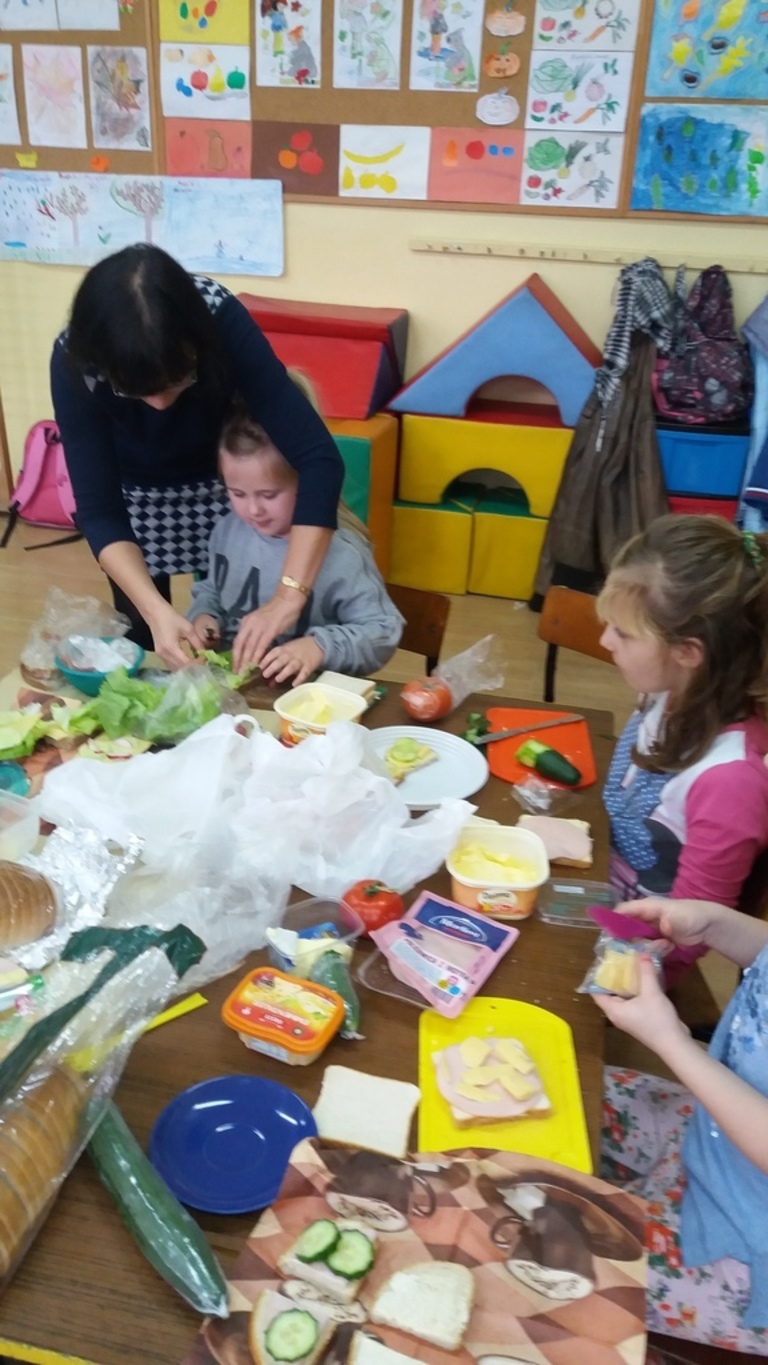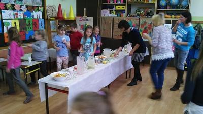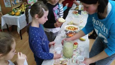 Mieniące się kolorami, fantastycznie smakowite, bogato i estetycznie wyglądające stoły zastawione barwnymi kanapkami, surówkami, koktajlami, owocami i warzywami można było dzisiaj obejrzeć w klasie II Szkoły Podstawowej w Sątocznie. Sala ta jawiła się jak niezwykła, bajeczna wyspa na szerokim oceanie szkoły. Wokół stołów radosne maluchy z klas I – III SP, ich roześmiane mamy i zadowolone z efektu wspólnej pracy nauczycielki – wychowawczynie klasy I – p. Dorota Sańko i klasy II – p. Elżbieta Szefer oraz w zastępstwie – p. Joanna Duryło i p. Joanna Tumowska.