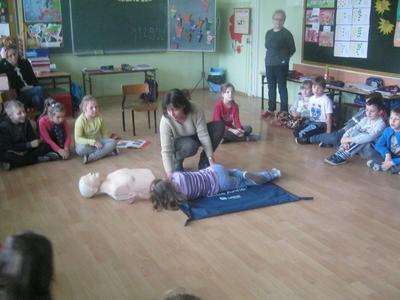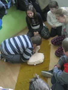 - ćwiczenie oddechów ratowniczych i ucisków klatki piersiowej na fantomach.