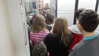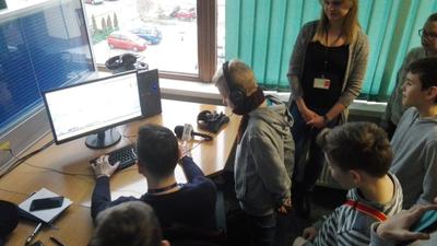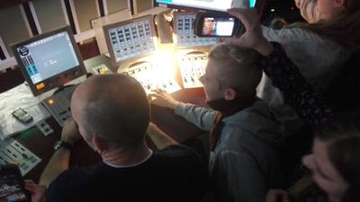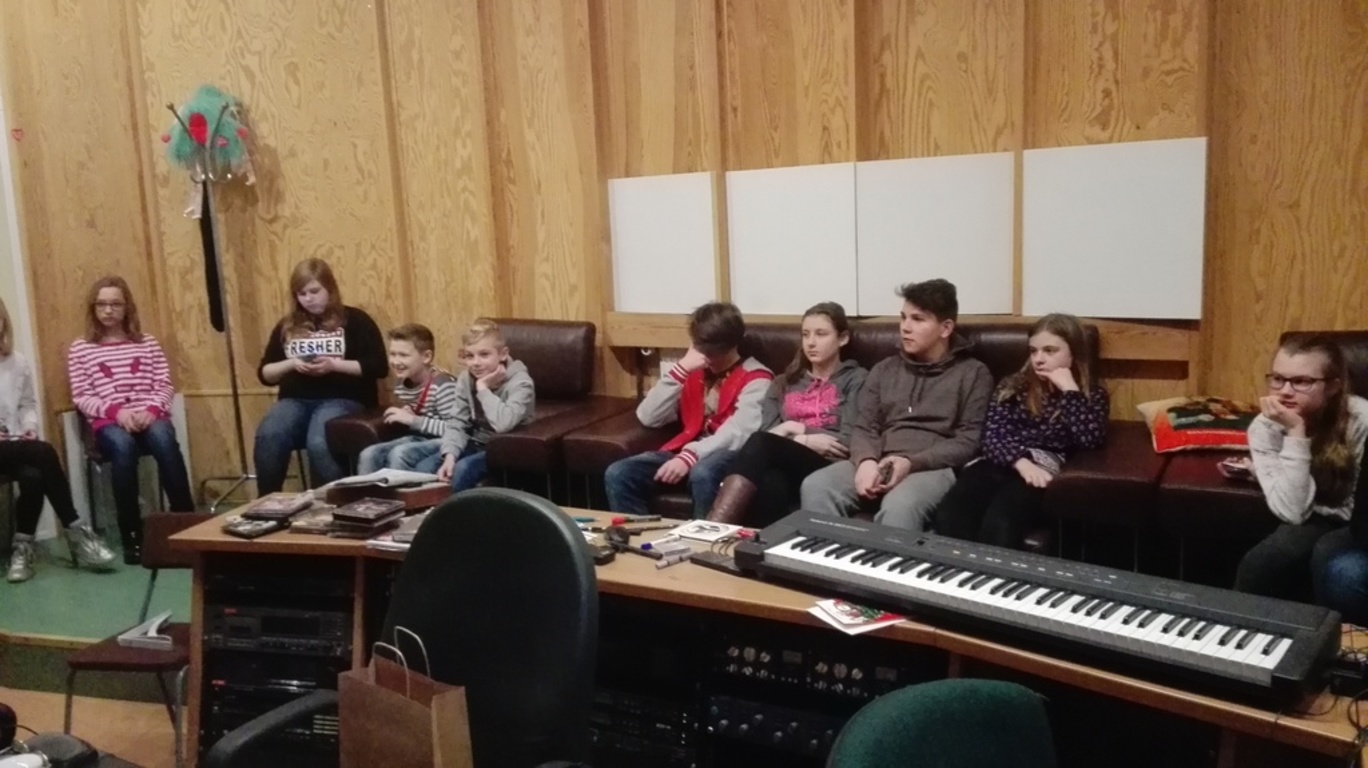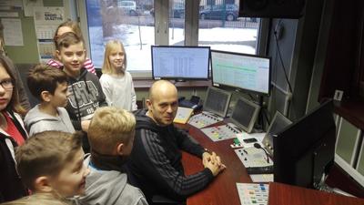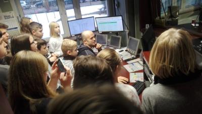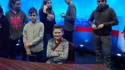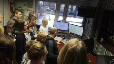 Z siedziby telewizji przenieśliśmy się do Radia Olsztyn, po którym młodzież oprowadzała siostra jednego z naszych uczniów-Szymona Kowejsza. Tu uczestnicy wycieczki oglądali studio emisyjne i nagraniowe, odwiedzili też pokój, w którym przygotowaywane są wiadomości, czyli tzw. newsroom.