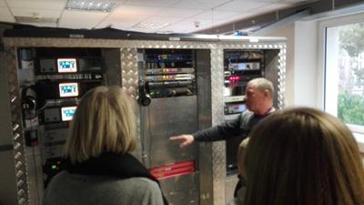 Samodzielny oddział Telewizji Polskiej w Olsztynie działa od 12 lat i w tej chwili pracuje w nim około 70 osób, którzy przygotowują blisko cztery godziny programu dziennie. Uczniowie naszej szkoły mieli okazję zobaczyć, w jaki sposób pracują dziennikarze i reporterzy. Dowiedzieli się także, jakie warunki trzeba spełnić, aby pracować w tym zawodzie. Mieli okazję odwiedzić studio nadawcze i reżyserkę.