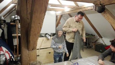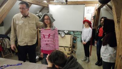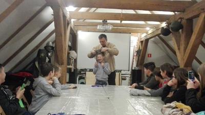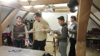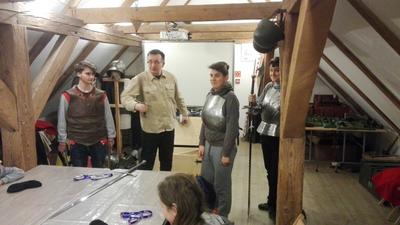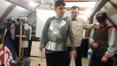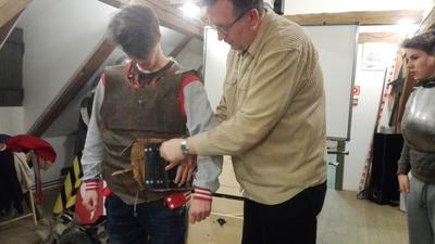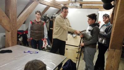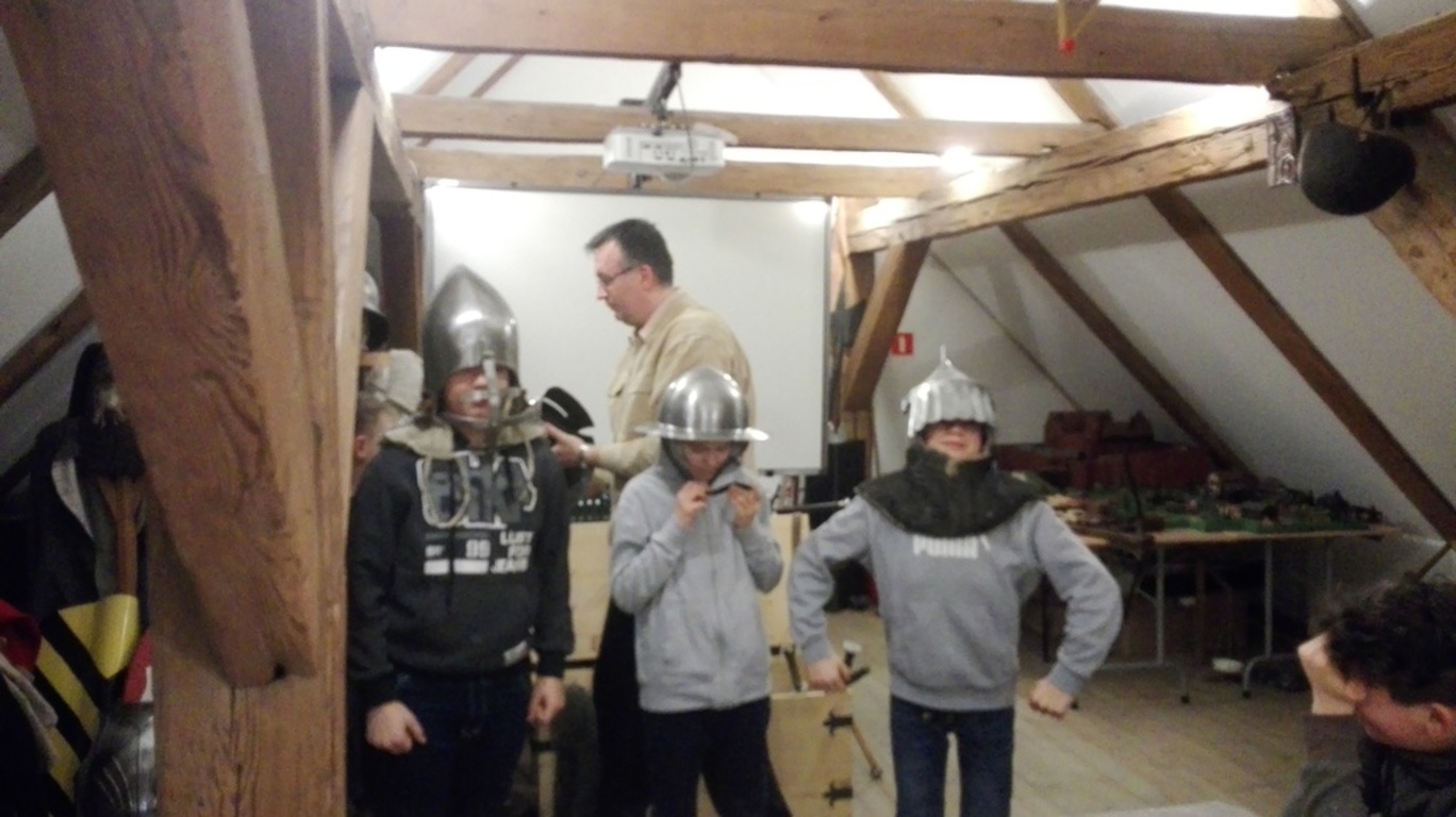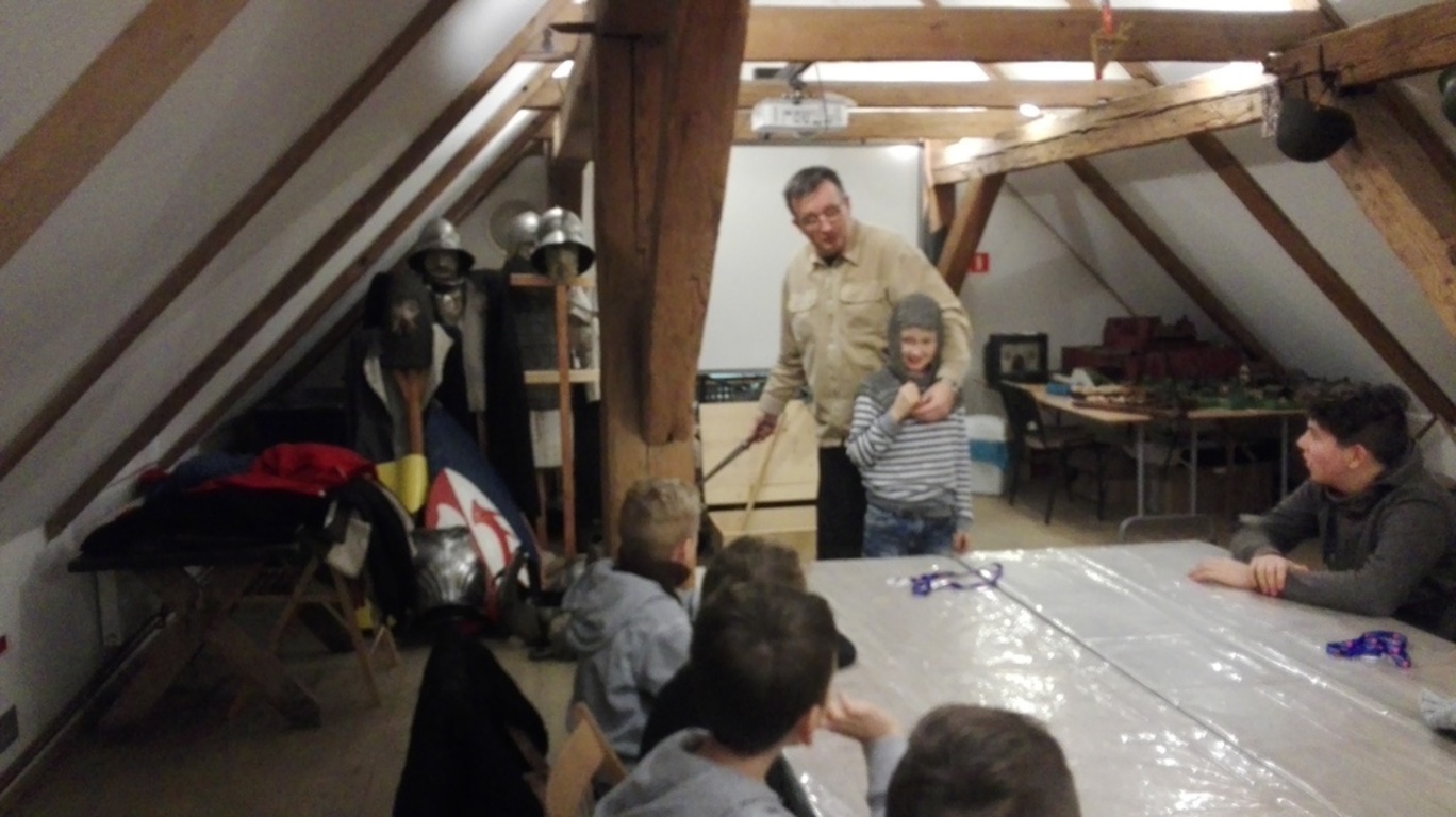 Następnie przenieśliśmy się do olsztyńskiego zamku, w którym mieści się siedziba Muzeum Warmii i Mazur. Za sprawą warsztatów pt. „Ferie pod blachą” bliżej zapoznaliśmy się z kulturą i obyczajami średniowiecznego rycerstwa. Mogliśmy tu ubrać się w zbroję rycerską i popróbować swoich sił we władaniu średniowieczną bronią. W ramach warsztatów można też było ćwiczyć rzuty podkową i strzelanie z łuku. Spotkanie w olsztyńskim zamku było świetną lekcją historii.