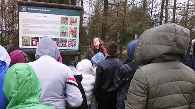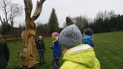 W dniu 21.04.2017r wszyscy uczniowie Szkoły Podstawowej w Sątocznie udali się z wizytą do Nadleśnictwa Srokowo. Przywitała nas pani leśnik Irena Dziadoń. Ciekawie spędziliśmy czas w sali pełnej eksponatów. Mogliśmy tam podziwiać orła bielika, bobra, kunę, bociana, a także poroża jeleni. Pani leśnik przygotowała nam zajęcia, na których rozwiązywaliśmy zagadki i rebusy oraz wyszukiwaliśmy nazwy drzew i zwierząt. Chłopcy z klasy V i VI mierzyli pnie drzew, aby następnie dokonać obliczeń długości życia danej rośliny. Po wysiłku umysłowym przyszedł czas na mały spacer. Pani Irena Dziadoń oprowadziła nas po ścieżce edukacyjnej. Zapoznaliśmy się z roślinnością występującą na naszych terenach, dowiedzieliśmy się też jak rozpoznawać gatunki drzew oraz jak chronić las. Dużym zainteresowaniem cieszyła się wystawa rzeźb na terenie Nadleśnictwa Srokowo. Pełni wrażeń i wiedzy pożegnaliśmy się z panią leśnik, zapraszając ją na podsumowanie Tygodnia Ekologicznego w naszej szkole.