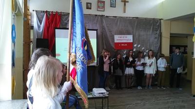 Z należytą powagą, uroczyście i z szacunkiem dla symboli narodowych w dniu 4 maja odbyła się w naszej szkole akademia z okazji Święta Narodowego Trzeciego Maja.