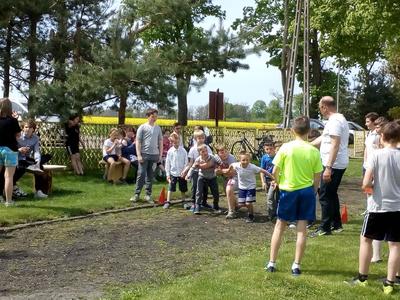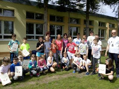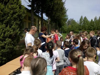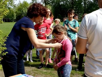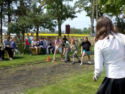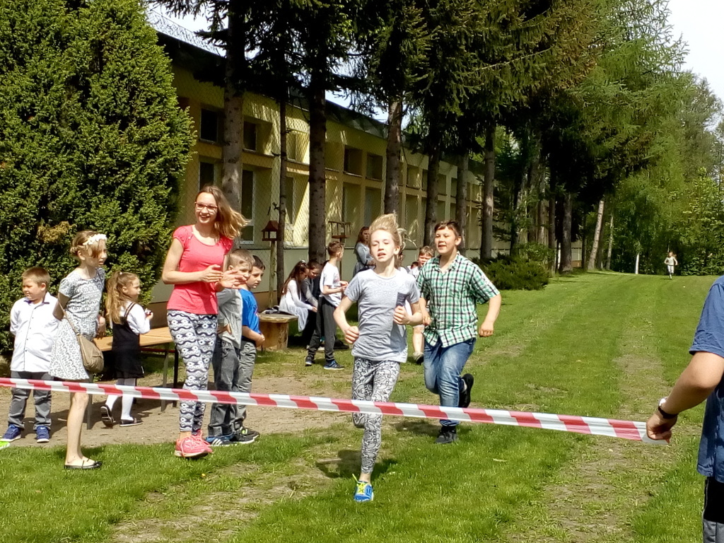 Po przeżyciach duchowych przedstawiciele poszczególnych klas przystąpili do rywalizacji w konkursie wiedzy o patronie zorganizowanym przez ks. A. Malaka, który także zadbał o nagrody dla uczestników. Dzieci klas edukacji wczesnoszkolnej w tym czasie malowały portrety papieża. Następnie odbył się tradycyjny Bieg Patrona przygotowany przez nauczyciela wych. fizycznego. Można było zdobyć medale w każdej kategorii wiekowej, poczynając od uczniów klasy I SP po III gim. Zwycięzcy otrzymali je z rąk p. dyrektor Teresy Pupin (zdjęcia na naszej stronie internetowej).
