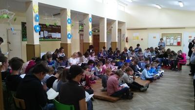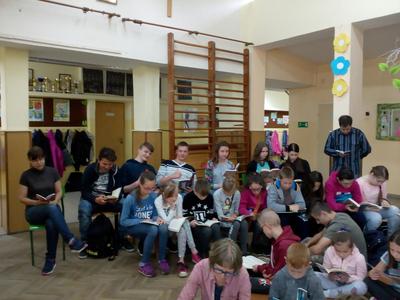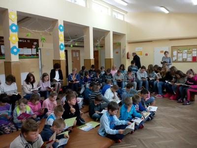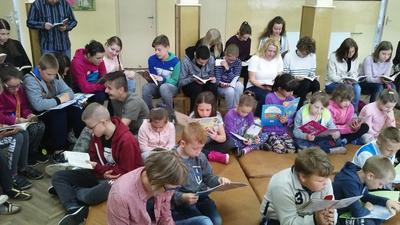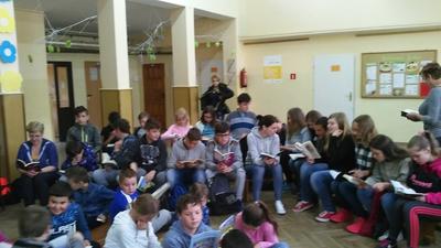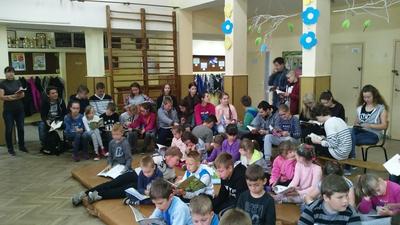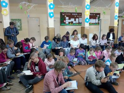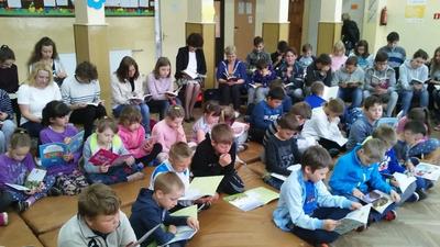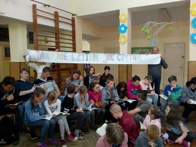 Rano udział w akcji promującej czytanie pt. „Jak nie czytam – jak czytam” z udziałem wszystkich dzieci szkoły – małych, większych i dorosłych …