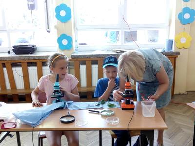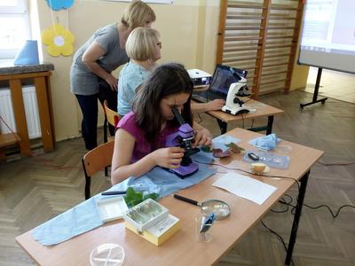 Wspólne popołudnie rozpoczęło się od podsumowania projektu gimnazjalnego klasy II. Jego tematem była w obecnym roku pierwsza pomoc przedmedyczna. Uczniowie przygotowani przez wychowawcę p. Piotra Kwiatkowskiego wypadli dobrze, prezentując swoją wiedzę w tym zakresie przed rodzicami i w obecności p. dyrektor Teresy Pupin. W tym czasie odbywały się równolegle konkurencje rekreacyjno – sportowe: slalom z przeszkodami dla chętnych uczestników prowadzony przez p. Marię Janicką, zawody sprawnościowe dla dzieci młodszych zorganizowane przez uczniów klasy III gimnazjum, turniej sołectw w piłce nożnej (przedstawiciele Bykowa, Prosny, Sajny Wielkiej i Sątoczna) przygotowany przez p. Andrzeja Jachowicza. Umiejętności wokalne i teatralne na szkolnej scenie pod akacją prezentowały maluchy z klas I – III SP pod opieką pań Doroty Sańko i Doroty Żolik. Następnie ich miejsce zajął zespół fletowy. Dziewczęta z klas V i VI SP zagrały kilka utworów. Z kolei zespół wokalny śpiewał piosenki młodzieżowe i papieskie. Obie grupy przygotowała p. Monika Borkowska. W holu szkoły dużym zainteresowaniem, szczególnie rodziców, cieszyły się zajęcia z mikroskopami prowadzone przez uczniów klasy V SP pod okiem p. Krystyny Zajdel. Komórkowa budowa roślin, rozmaz krwi ludzkiej, mózg psa czy mięsień sercowy konia oglądane na tablicy multimedialnej dzięki mikroskopowi z kamerą robiły wrażenie. Obok kusiły zajęcia z robotyki. Wielką atrakcją była prezentacja sprzętu wojskowego przygotowana przez przedstawicieli Straży Granicznej w Sępopolu.