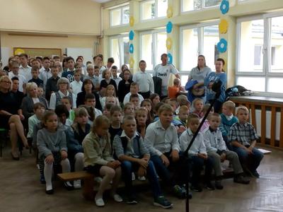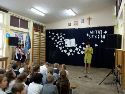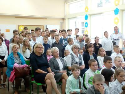 Na korytarzu można spotkać całkiem malutkie dzieci z tzw. zerówki. Są w naszej szkole po raz pierwszy. Dla nich specjalnie urządzono oddzielną salę lekcyjną po sąsiedzku z pierwszakami. W łazienkach zamontowano odpowiedniej wielkości umywalki i inne urządzenia codziennego użytku. Jakby tego było mało pani dyrektor Teresa Pupin w swoim inauguracyjnym przemówieniu oznajmiła społeczności szkolnej, że nie ma już klasy I gimnazjum, lecz jest klasa VII szkoły podstawowej. Rok zmian! Wśród uczniów nowe twarze, także wśród nauczycieli. Bibliotekę szkolną w tym roku poprowadzi i będzie uczyła religii – pani Katarzyna Wasilewska, historii – pan Rafał Chlewiński.