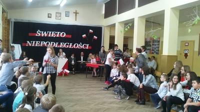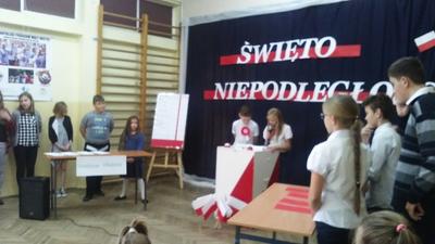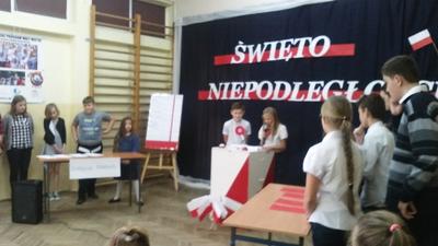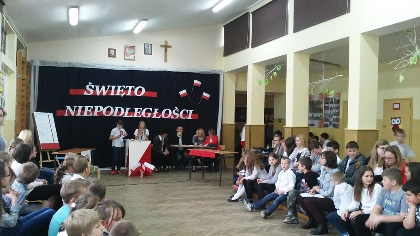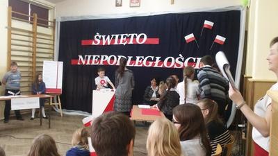 Autorka przedsięwzięcia – pani Joanna Duryło z klasą VI drobiazgowo opracowała scenariusz obchodów naszego narodowego święta. Postanowiła, by w tym dniu uczniowie pokazali swój patriotyzm, rywalizując ze sobą na polu wiedzy o Polsce, w zakresie znajomości polszczyzny, w umiejętności rozpoznawania postaci z literatury polskiej i w znajomości popularnych pieśni patriotycznych. Sześcioosobowe drużyny Białych i Czerwonych – przedstawiciele wszystkich klas – stanęły na wprost siebie