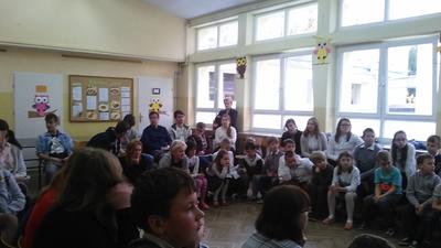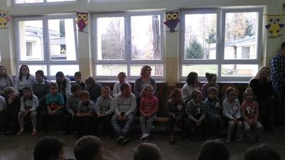 Rozpoczęto hymnem państwowym. Ewa i Wiktor z klasy VI prowadzili turniej, jury czuwało nad jego przebiegiem. Pozostali uczniowie klasy VI wraz z panią Joanną Duryło dopilnowywali szczegółów. Pytania nie były skomplikowane, choć pisownia niektórych wyrazów mogła sprawić drużynom kłopot. Ale poradziły sobie świetnie, co cieszy, bo świadomość językowa to wyróżnik polskości, obok trzech pozostałych symboli. Minimalnie wygrała drużyna Białych, co jury obliczyło w czasie, kiedy pani Joanna Duryło włączała do zabawy publiczność, rozdając biało – czerwone chorągiewki. Na koniec wszyscy wykonali „Kocham Cię Polsko” i szczęśliwi wrócili do klas.
