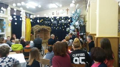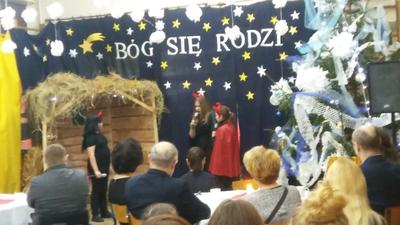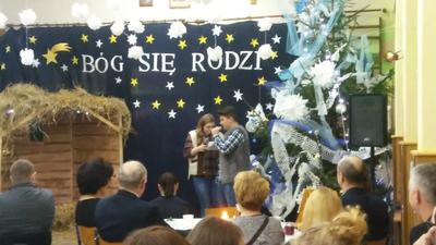 a następnie w trzech utworach wystąpił szkolny zespół muzyczny prowadzony przez panią Monikę Borkowską. Na koniec powrócono do wspólnego kolędowania. Przygotowane śpiewniczki, rozłożone na kawiarnianych stolikach, ułatwiały zadanie. Tradycja wspólnego śpiewania kolęd przez Polaków została pięknie podtrzymana.