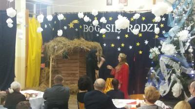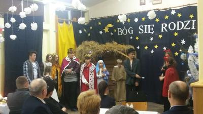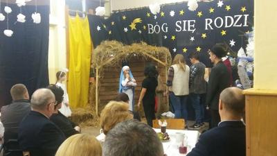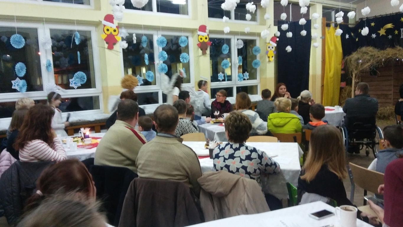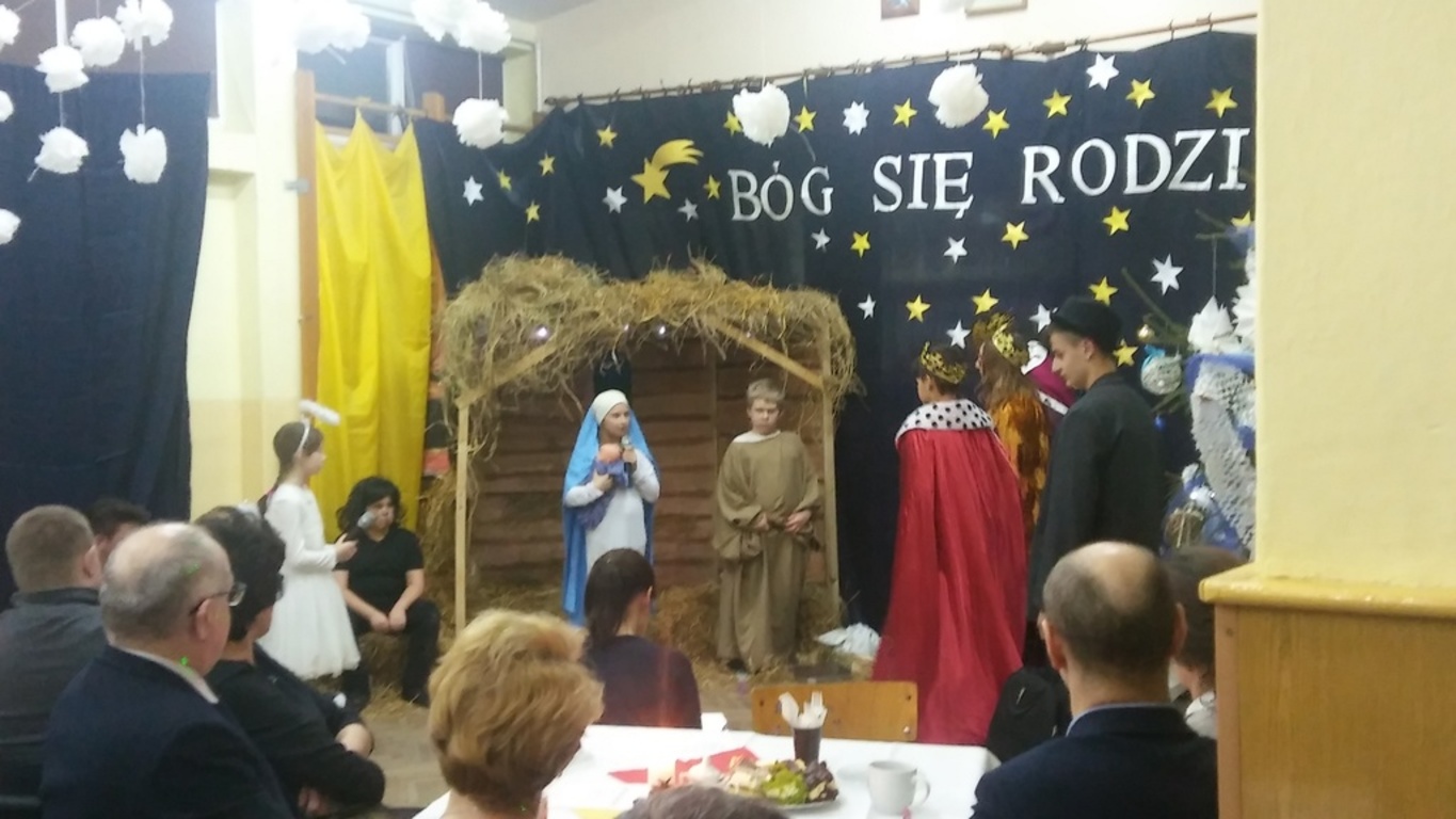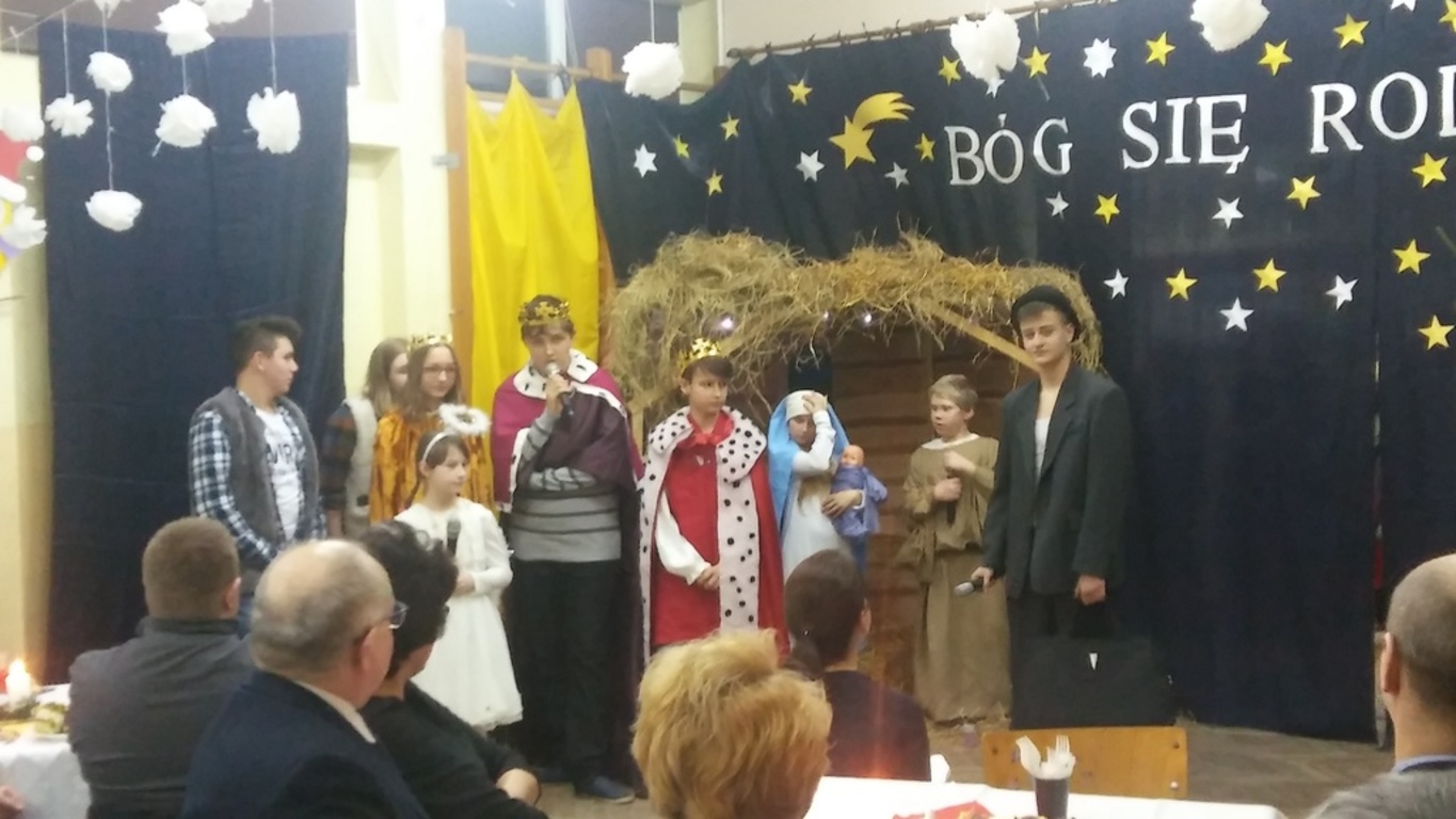 Na zaproszenie pani dyrektor szkoły Teresy Pupin oraz uczniów i nauczycieli, którzy przygotowali jasełka pt. „Rewanż w niebie”, tłumnie przybyli rodzice, dziadkowie,a przede wszystkim przyjechali Szanowni Goście: pan Ryszard Ostrowski – Burmistrz Korsz z żoną, pan Piotr Sańko – Kierownik Referatu Oświaty i Kultury, pani Danuta Pieksza – księgowa Referatu Oświaty i Kultury, pani Mirosława Kaczmarczyk – kierownik Biblioteki Publicznej w Sątocznie, pani Magdalena Adamowicz – przedstawicielka Stowarzyszenia „Dolina Gubra”, pani Jolanta Łuszczak – przewodnicząca Rady Rodziców.