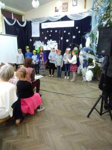 Zaś punktem kulminacyjnym spotkania stało się gremialne wykonanie przez wszystkie zgromadzone dzieci „Sto lat” dla swoich Babć i Dziadków oraz wręczenie im sympatycznych upominków przygotowanych przez Samorząd Uczniowski pod opieką pani Joanny Duryło.