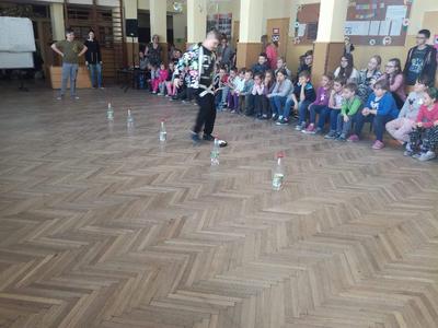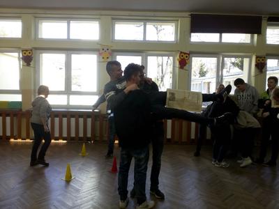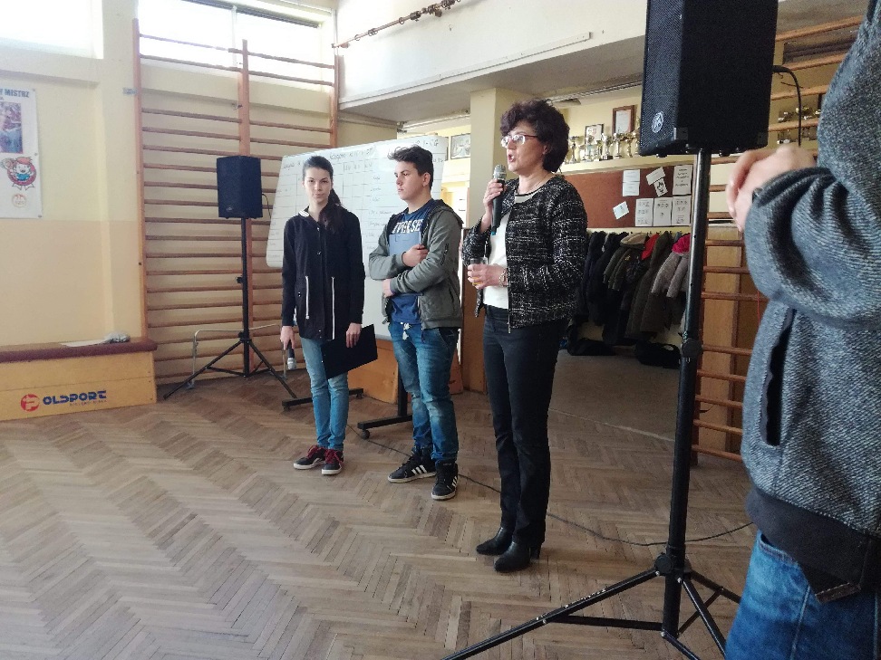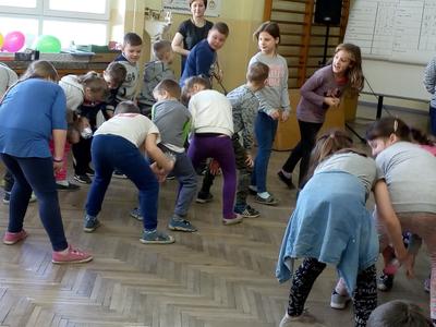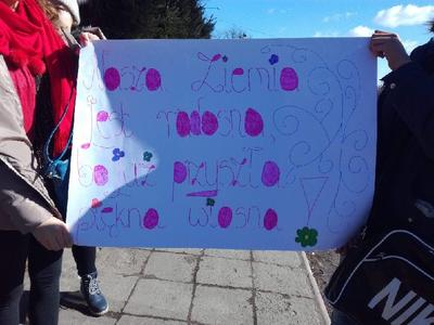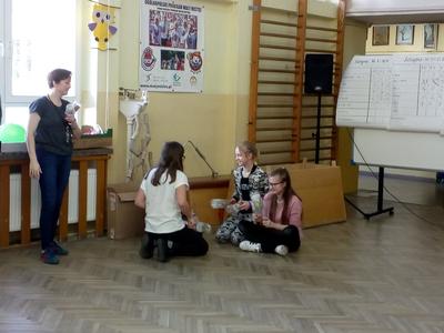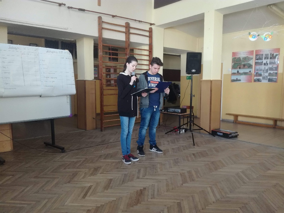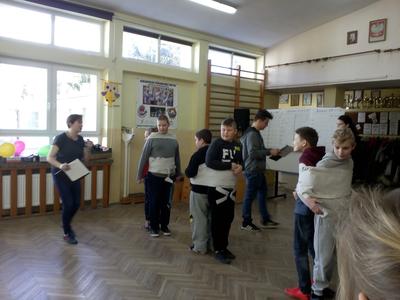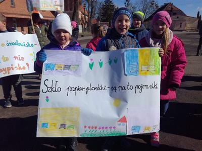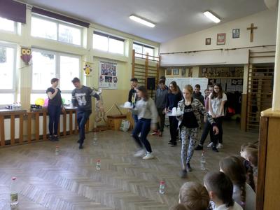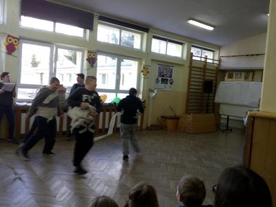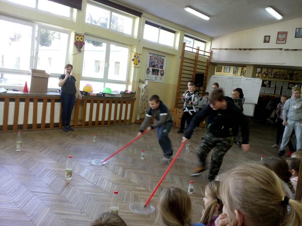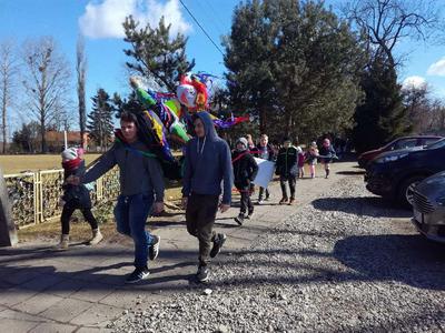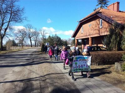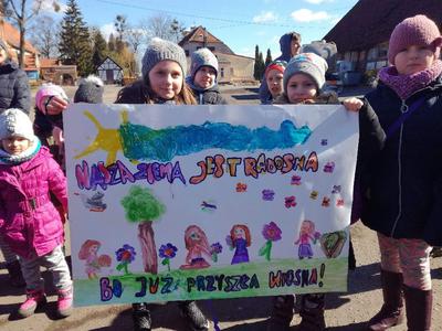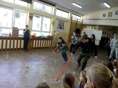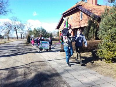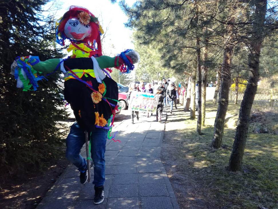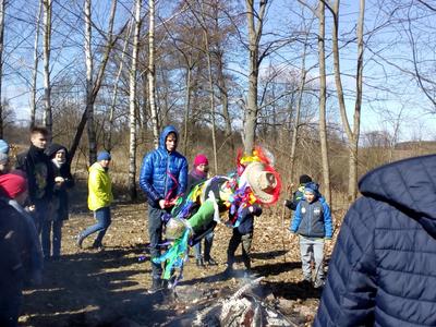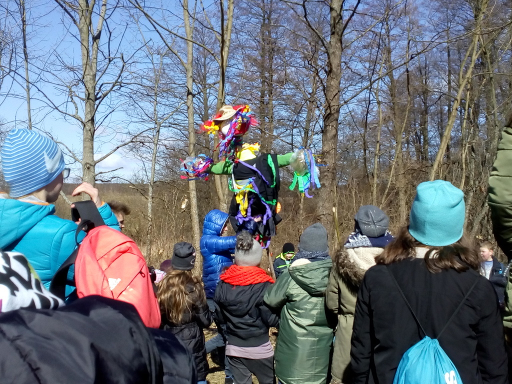 Pierwszy dzień Tygodnia Ekologicznego to dzień bez zajęć dydaktycznych, ale pełen ciekawych pomysłów i mądrej wiedzy. Na apelu powitali wszystkich Zuzia i Szymon z III oddziału gimnazjalnego i przedstawili plan działań przygotowany przez organizatorki przedsięwzięcia – panie Krystynę Zajdel i Teresę Pupin. Potem skupili się na prowadzeniu Dnia Wiosny. W tym roku od rana wszystkie klasy z wychowawcami wymyślały hasła o tematyce przyrodniczej. Później pan Rafał Chlewiński sympatycznie poprowadził konkurs pt. „Znam polskie przysłowia o przyrodzie” dla trzech etapów edukacyjnych. Było zabawnie i okazało się, że uczniowie nieźle orientują się w tej materii. Co roku wiele emocji budzi „śmiecioturniej”, czyli sportowa rywalizacja klas z wykorzystaniem ekologicznych rekwizytów. Bardzo pomysłowo przygotowała ją pani Joanna Duryło. Ciekawe konkurencje powodowały, że nie było mowy o nudzie. Najlepsze w swoich kategoriach okazały się klasy: III, VI i VII SP. Nagrody odbiorą podczas uroczystego podsumowania XIII Tygodnia Ekologicznego w kwietniu. Przemarsz uczniów przez wieś z kukłą marzanny i z wymyślonymi przez siebie estetycznie ozdobionymi hasłami przyrodniczymi to kolejny punkt programu przewidzianego na pierwszy Dzień Wiosny. Gdy kolorowy korowód powrócił do szkoły, czekało na niego wielkie ognisko i zapraszał zapach pieczonych kiełbasek. Na koniec bez żalu spalono w nim symbol zimy ku uciesze wszystkich zebranych.