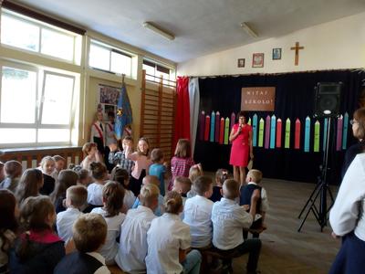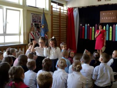 i sal lekcyjnych wyposażonych zgodnie z wymogami XXI wieku. Pani dyrektor powitała zebranych, poczynając od dzieci z klasy „0”, które otoczyła opieką pani Joanna Duryło.