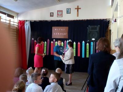 Wcześniej jednak udaliśmy się z pocztem sztandarowym na czele do kościoła parafialnego, by godnie rozpocząć nowy rok szkolny. Odświętnie ubrani uczniowie ożywili senną wieś, a za chwilę także mury szkoły zapraszającej czystością korytarzy
