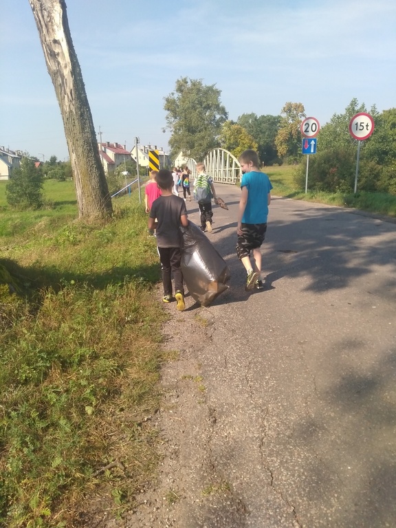 W piątek, 21 września klasa IV wraz z wychowawczynią wyruszyła do miejscowości Prosna celem poszukiwania śmieci. A wszystko to za sprawą „Sprzątania Świata” - corocznej akcji w naszej szkole. Worki na śmieci, rękawiczki i świetne nastroje – to obowiązkowy strój pogromców śmieci. Pogoda też była dla nas łaskawa i ogrzewała promieniami słońca naszą ścieżkę pracy.