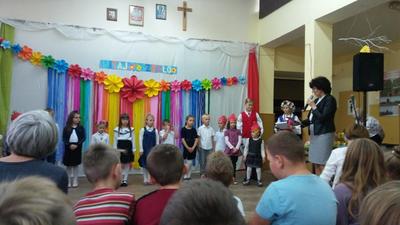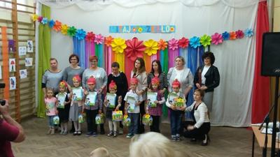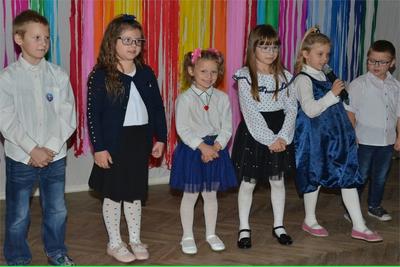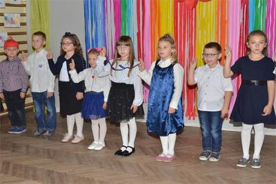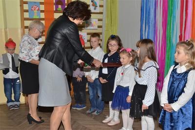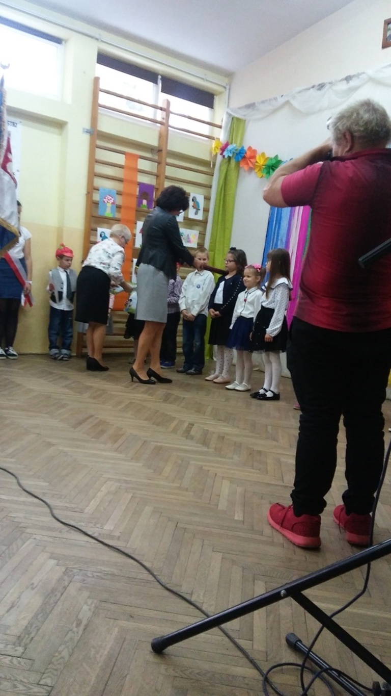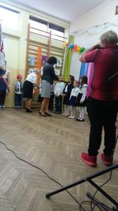 Uroczystego aktu dokonała p. dyrektor Teresa Pupin, ale wcześniej uczniowie przedstawili się zebranym za pomocą wesołych rymowanek, a następnie zaprezentowali swoje różnorodne, nabyte już w szkole, umiejętności. Wierszyki i piosenki płynęły potoczyście, a to za sprawą pań wychowawczyń