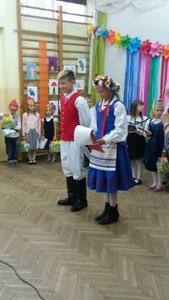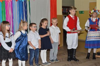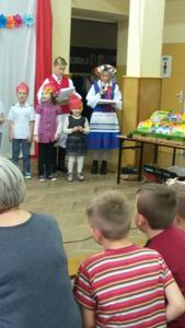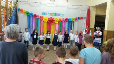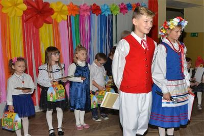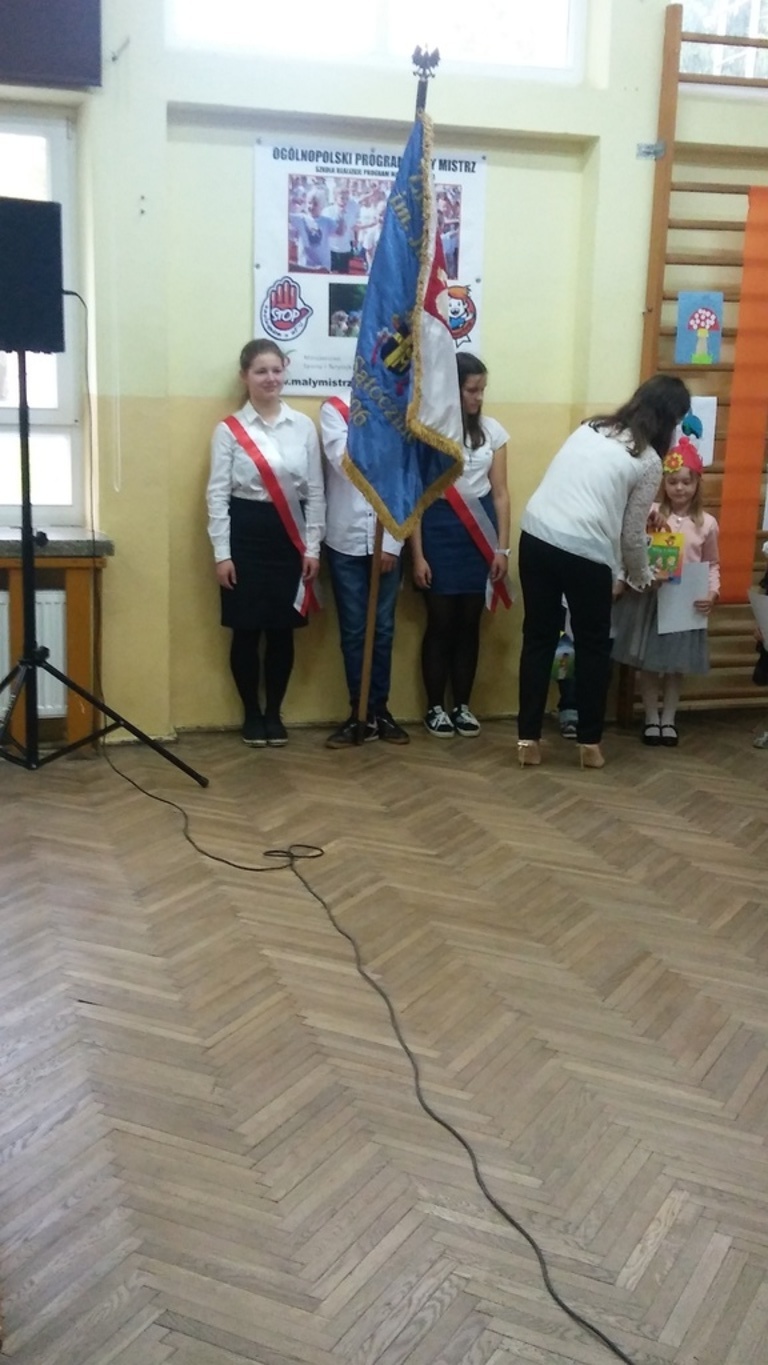 – p. Joanny Duryło – kl. „0” i p. Elżbiety Szefer – kl. I, którez ogromnym zaangażowaniem przygotowywały maluchy do występu. W kulminacyjnym jego momencie, prowadzący uroczystość – Ewa i Wiktor z klasy VII – ubrani w przepiękne warmińskie stroje regionalne, zadali uświęcone tradycją pytania: Kto ty jesteś?, Jaki znak twój? … Ślubowanie złożone na sztandar szkoły i uroczyście wykonany hymn państwowy podkreśliły wagę wydarzenia. Przemyślane i mądre słowa p. dyrektor Teresy Pupin skierowane do rodziców i głównych bohaterów uroczystości dopełniły całości. Przy okazji wspomniała ona o zakończonym kilka dni wcześniej projekcie Stowarzyszenia Animator, funkcjonującego przy szkole. Jego prezes p. Andrzej Jachowicz pozyskał środki na wykonanie regionalnych strojów warmińskich, w których pięknie prezentowali się prowadzący dzisiejszą uroczystość uczniowie.