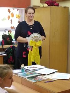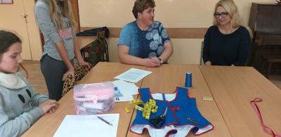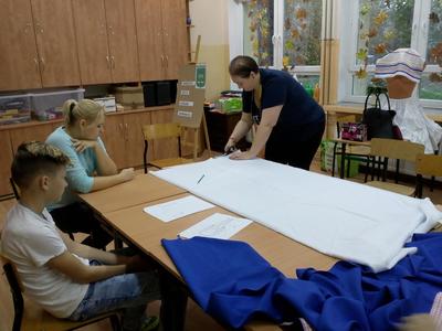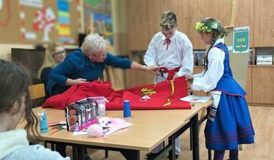 Naszą instruktorką była pani Małgorzata Wędrowska, która jest właścicielką pracowni i wypożyczalni strojów M jak MAŁGORZATA w Bartoszycach. Zajmuje się też szyciem strojów ludowych dla zespołów folklorystycznych.
