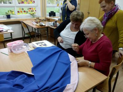 Warsztaty miały na celu przybliżenie uczestnikom wiedzy na temat wyglądu strojów ludowych z regionu Warmii i Mazur oraz uszycie kompletu strojów dla chłopca i dziewczynki.