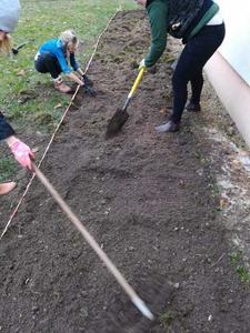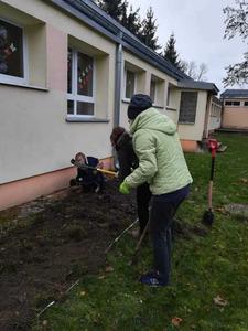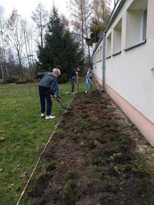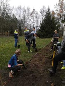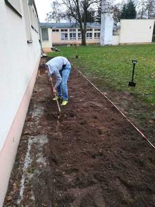 Prace już trwają. Uczniowie klasy VII pod opieką pani Katarzyny Wasilewskiej i pana Mirosława Szefera przy ogromnej pomocy mam: pani Elżbiety Brodzik i Marty Prusinowskiej przygotowali teren pod ogród. Pierwszy etap prac ukończony. Dziękuję wszystkim zaangażowanym.