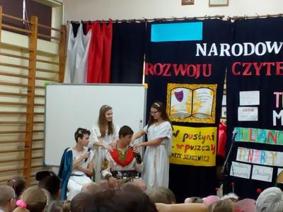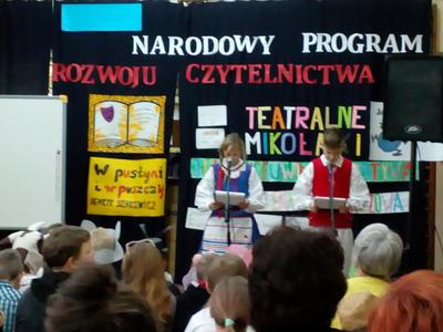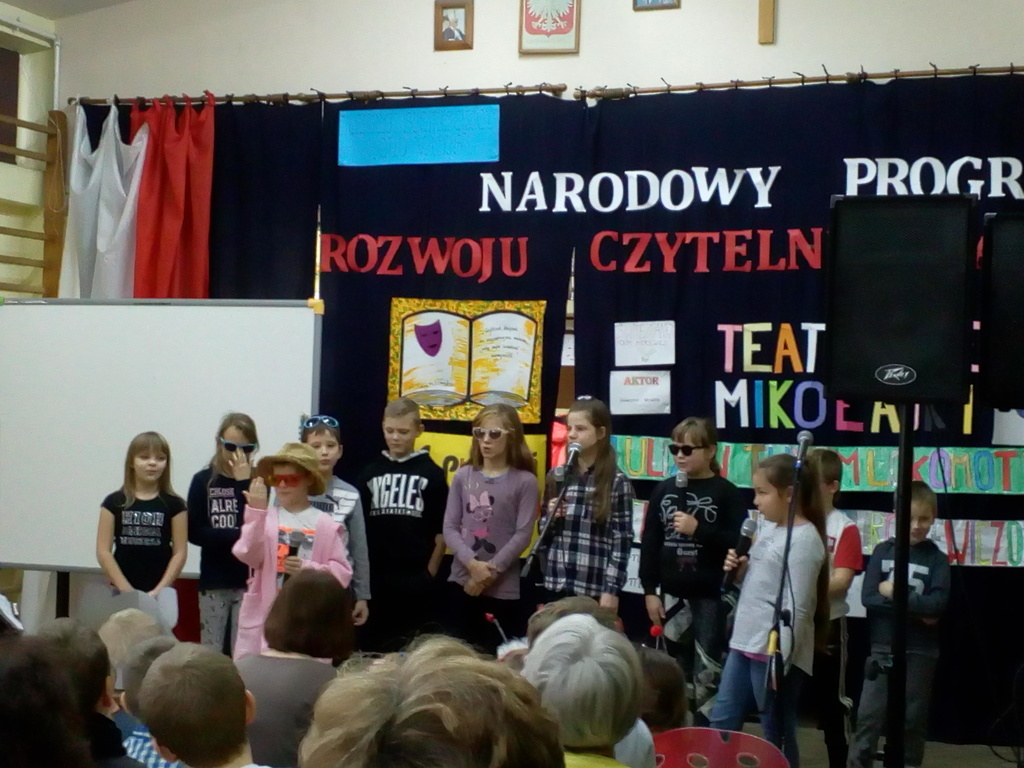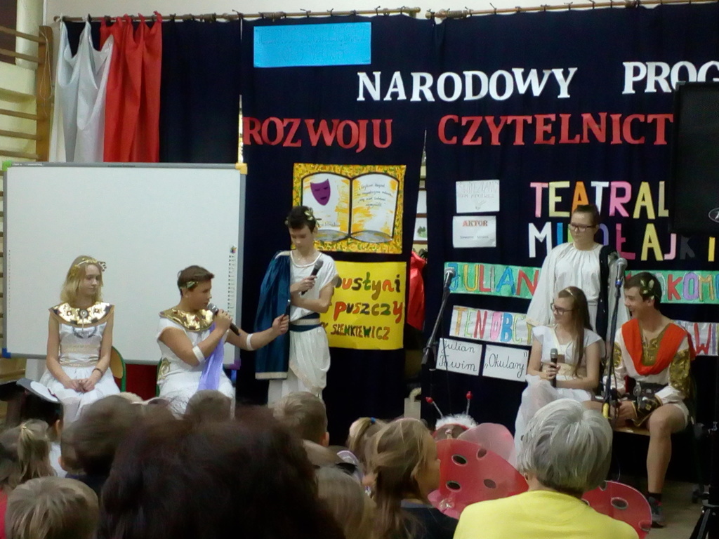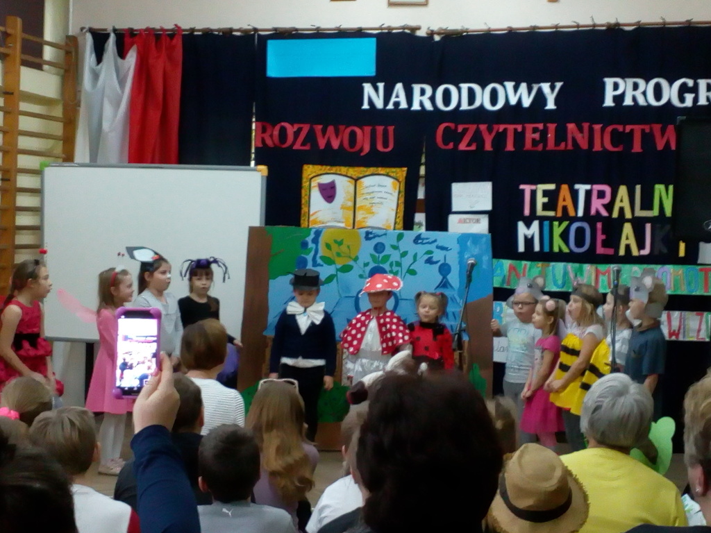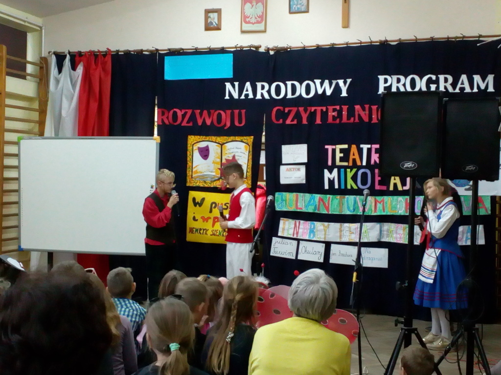 „Czytanie książek to najpiękniejsza zabawa, jaką sobie ludzkość wymyśliła.” To trafne spostrzeżenie Wisławy Szymborskiej stało się inspiracją do spotkania zatytułowanego „Teatralne mikołajki”, które miało miejsce 6 grudnia w naszej szkole. Uczniowie poszczególnych klas zaprezentowali na szkolnej scenie własne – teatralne interpretacje tekstów literackich polskich autorów. Był więc Brzechwa, Tuwim, Sienkiewicz, Mickiewicz, Jurgielewiczowa czy Mrożek. Świetne pomysły sceniczne prześcigały się w rywalizacji o oryginalność ze scenografią, rekwizytami czy kostiumami aktorów z różnych klas. Różnorodność tekstów, żywiołowość wykonania, nieukrywany zapał, pasja, zarówno wykonawców jak i nauczycieli, przyciągały uwagę widzów, a wśród nich rodziców uczniów, którzy gościli w naszej szkole z racji zaplanowanego na dziś podsumowania realizacji Narodowego Programu Rozwoju Czytelnictwa w formie miniprzeglądu teatralnego.