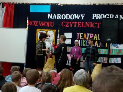 Dziękujemy wszystkim wykonawcom za ciekawe inscenizacje, wychowawcom i nauczycielom za opiekę i zaangażowanie w projekt pt. „Teatralne mikołajki”, pomysłodawcom spotkania, rodzicom za wszelką udzieloną pomoc. Wciąż aktualna pozostaje wypowiedź pisarki Marii Dąbrowskiej, że „Książki i możność czytania to jeden z największych cudów ludzkiej cywilizacji”. Należy pamiętać, że korzystanie z niego to wspólna sprawa rodziców, uczniów i nauczycieli.