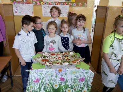 i Teresie Pupin. Szacunek należy oddać też wszystkim zaangażowanym w realizację dzisiejszych zadań, także uczniom i rodzicom, którzy wspomagali swoje dzieci, nie szczędząc czasu i wysiłków. Oby zdrowe odżywianie stało się codzienną praktyką. Słowa podziękowania należą się też tym, którzy założyli „Ogród kwiatów wiosennych” na 100 – lecie odzyskania niepodległości – m. in. pani Iwonie Bloch i klasie VII.