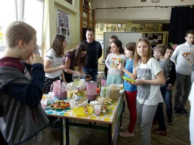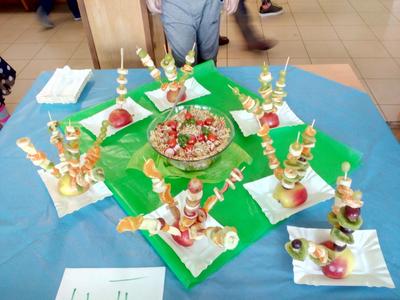 zostałby zaskoczony oryginalnością, pomysłowością i niezwykłością dziewięciu stoisk ze zdrową żywnością, przygotowanych przez uczniów wszystkich klas.