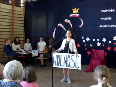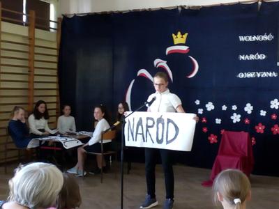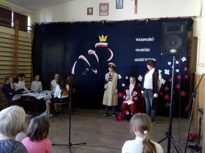 – p. Joannę Tumowską, przypomnieli znaczenie ważnych pojęć takich jak: naród, wolność, ojczyzna. Odtworzyli epokowe wydarzenia z 3 maja 1791 roku.
