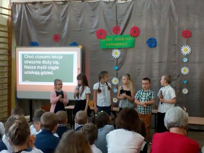 Tekst do utworu „Song dla teacherów” napisał Bartosz Staszewski z klasy VI. Utwór do odsłuchania w załaczniku.