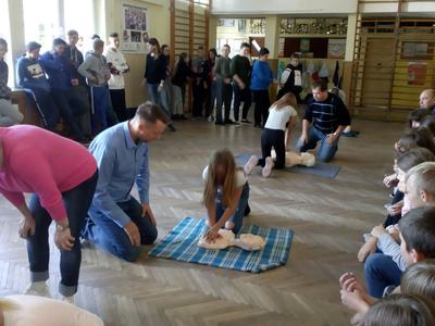 16 października w samo południe nasza szkoła przyłączyła się do ogólnopolskiej akcji w biciu Rekordu w Pierwszej Pomocy. Tego dnia obchodzony jest Europejski Dzień Przywracania Czynności Serca. Dzień ten obchodzony jest od 2013 roku z inicjatywy Europejskiej Rady Resuscytacji. Jego celem jest popularyzacja wiedzy na temat zasad udzielania pierwszej pomocy w stosunku do osoby, u której wystąpiło nagłe zatrzymanie krążenia.