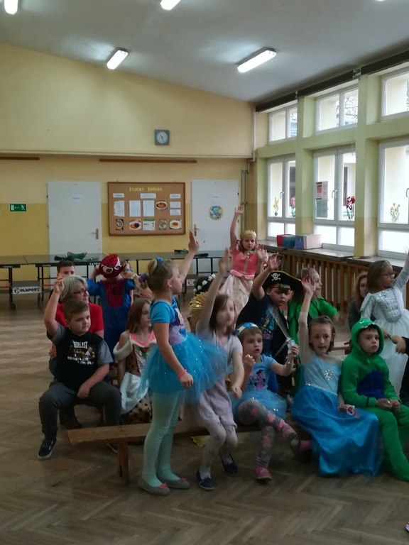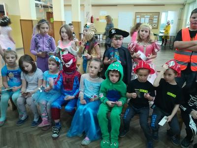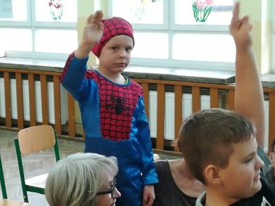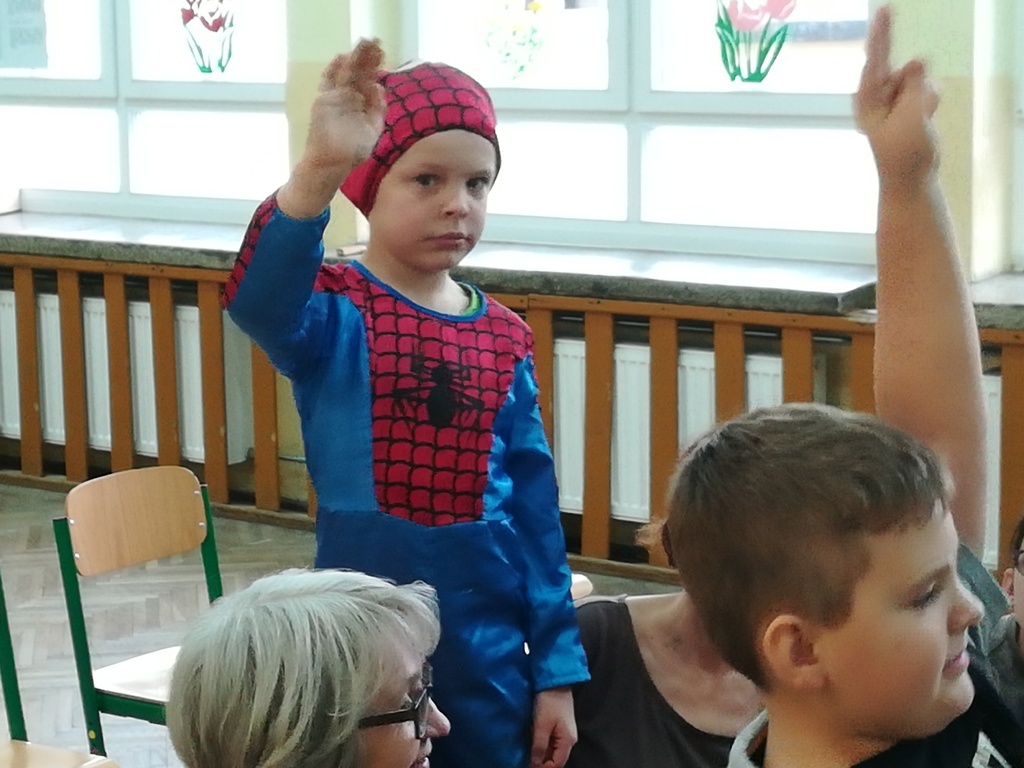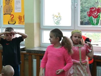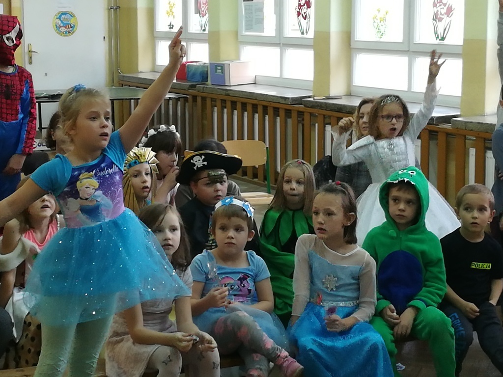 6 listopada obchodziliśmy w naszej szkole Międzynarodowy Dzień Postaci z Bajek. Chętni uczniowie mogli przebrać się za ulubioną postać z bajki. Po szkolnym korytarzu przechadzała się księżniczka, królewna Śnieżka, piękna Elsa, spaiderman, dwóch dzielnych policjantów, z Egiptu przybyła Kleopatra. Spotkać mogliśmy także pirata, słodką żabkę, miłego dinozaura i przerażającego kościotrupa... Wrażeń nie brakowało! Zwłaszcza podczas bajkowych zagadek, na które uczniowie odpowiadali bez większych trudności. Co to oznacza? To proste. Bajki znamy i chętnie czytamy!