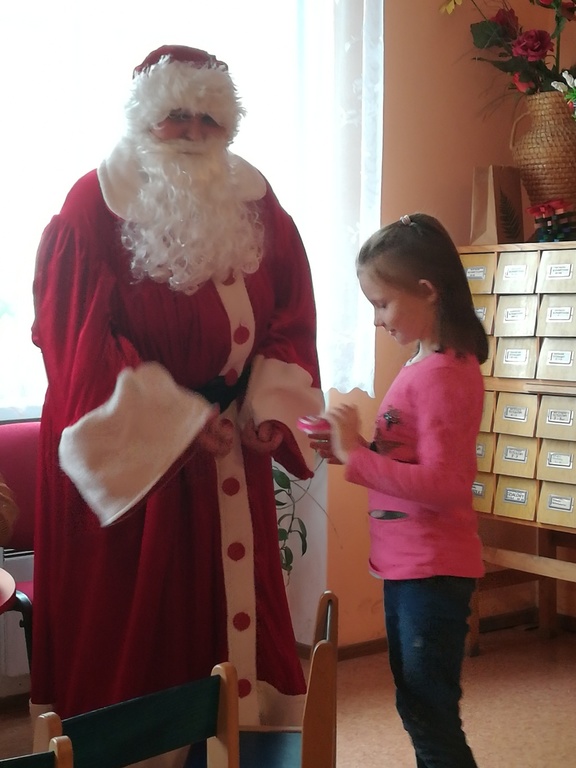 6 grudnia szkołę odwiedził Mikołaj... Okazało się, że wszystkie dzieci były grzeczne i każde otrzymało słodką niespodziankę. Mikołaja spotkaliśmy także w bibliotece publicznej, który z pomocą pani Mirki obdarował młodszych uczniów drobnymi upominkami. Przy dźwiękach świątecznych piosenek dzieci recytowały wierszyki, tańczyły i zadawały pytania Mikołajowi. O cudowną atmosferę podczas spotkania z wyczekiwanym gościem zadbała niezastąpiona bibliotekarka w Sątocznie, pani Mirka. Dziękujemy!
