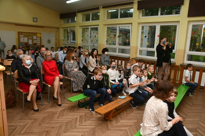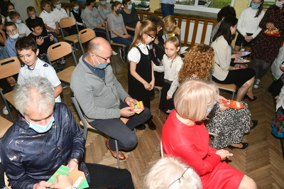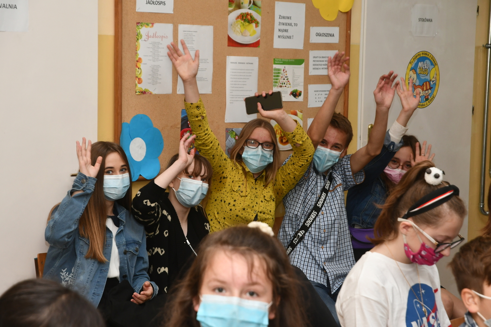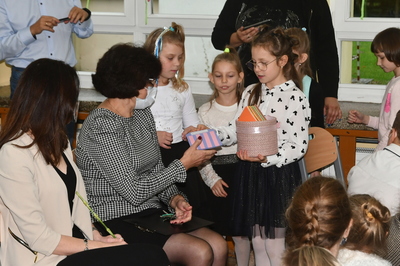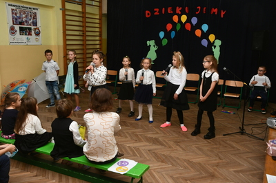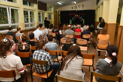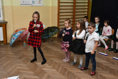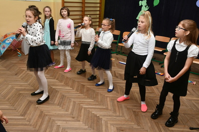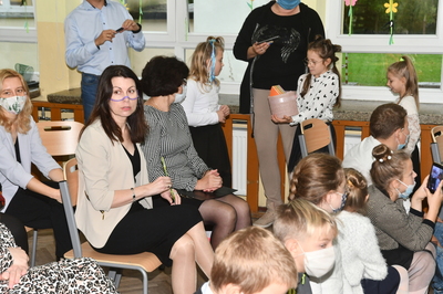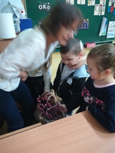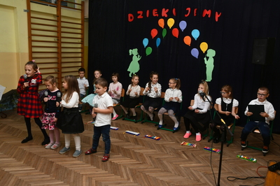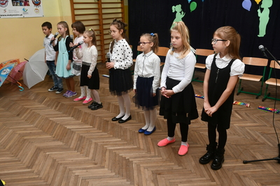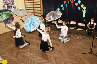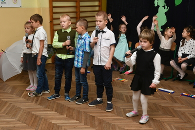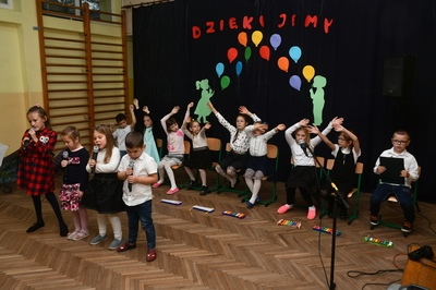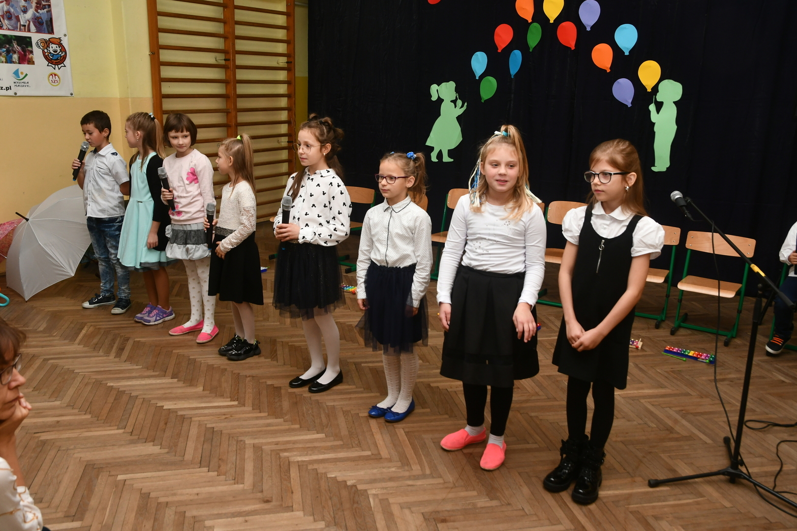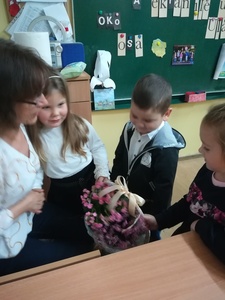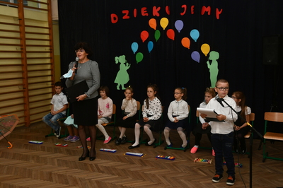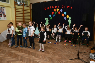 Dnia 14 października obchodziliśmy w naszej szkole Dzień Edukacji Narodowej. Pomimo, że za oknem padał deszcz, w szkole świeciło słońce. A to za sprawą dzieci, które pełne uśmiechu, z kwiatami i słodyczami w dłoniach dziękowały nauczycielom za ich pracę, poświęcenie i cierpliwość. Widok uczniów w galowych strojach budził zachwyt! Po klasowych spotkaniach przyszedł czas na występy najmłodszych uczniów. Były wierszyki, piosenki i tańce. Wspaniały program przygotowały panie z edukacji wczesnoszkolnej oraz wychowawczyni przedszkolaków. Dziękujemy paniom: Dorocie Sańko, Emilii Wójtowicz oraz Natalii Diduch. Dzieci pomimo tremy poradziły sobie doskonale. Na zakończenie obdarowały nauczycieli przepięknymi laurkami. Natomiast Samorząd Uczniowski przygotował słodkie upominki dla każdego pracownika szkoły.