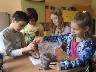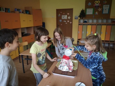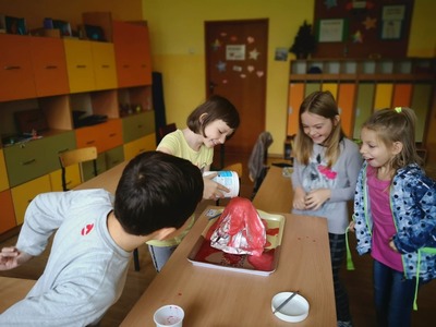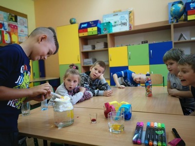 Dobre nawyki ekologiczne warto wpajać już od najmłodszych lat, dlatego klasy I- III pod okiem wychowawczyń Emilii Wójtowicz i Natalii Diduch biorą udział w programie i konkursie edukacyjnym „Lekcje z Fajniakami”. Dzieci zmierzyły się z żywiołami powietrza, ziemi i wody. Przewodnikami opowieści o magii natury byli bohaterowie Gangu Fajniaków. Uczniowie mieli okazję poszerzyć wiedzę, posłuchać bajek z morałem, wykazać się kreatywnością, pobawić maskotkami, a także przeprowadzić eksperymenty, co okazało się najciekawszym punktem programu. Trzymamy kciuki za konkursowe prace plastyczne naszych podopiecznych. Zarazem jesteśmy pewni, że wiedza ekologiczna przez nich zdobyta jest najcenniejszą nagrodą 😊