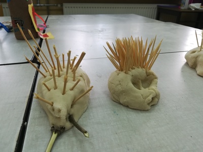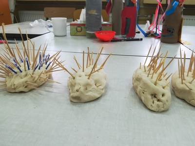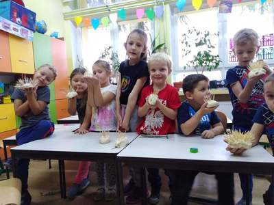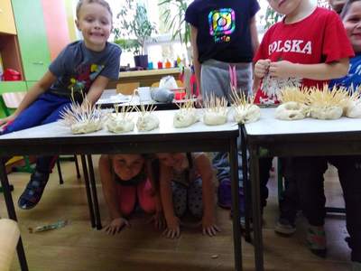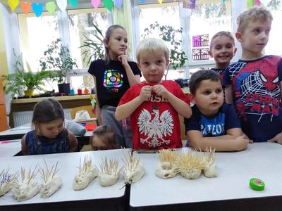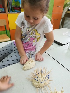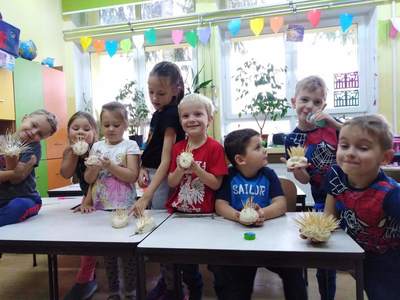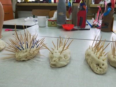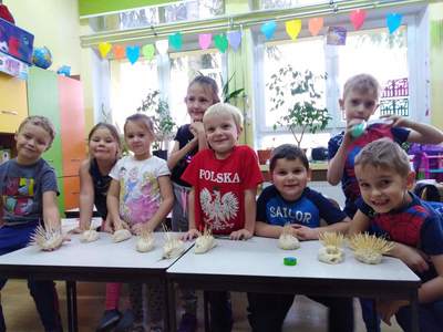 16.11.2020r. obchodziliśmy Dzień Jeża. Wysłuchaliśmy i obejrzeliśmy 5 ciekawostek o tych ciekawych zwierzątkach. Następnie ulepiliśmy kolczaste jeże z masy solnej oraz wykonaliśmy prace plastyczne "Jeże z kolorowymi kolcami".