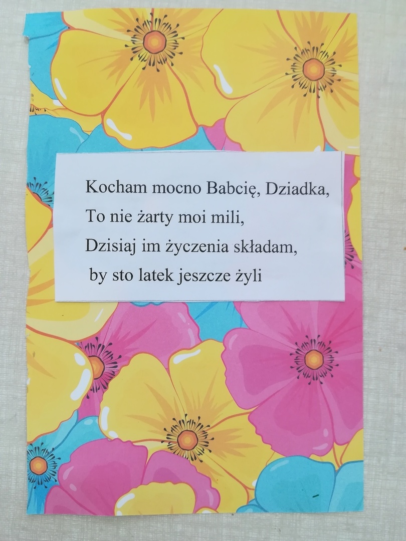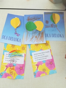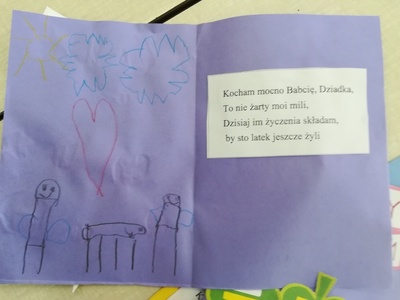 Dzisiaj każda Babcia obchodzi swoje święto. Jutro swoją uroczystość mają Dziadkowie. Z tej okazji przedszkolaki wykonały laurki oraz złożyły życzenia.
