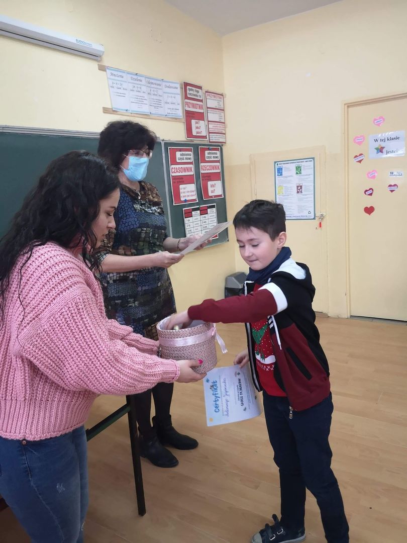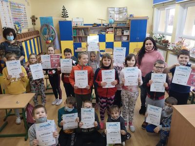 Uczniowie klas I - III brali udział w konkursie edukacyjnym "Szkolne przygody Gangu Fajniaków". Dzieci wykonały prace plastyczne związane z czterema żywiołami: ogniem, wodą, powietrzem i ziemią. Uczniowie pracowali pod kierunkiem dwóch wspaniałych pań: Emilii Wójtowicz i Natalii Diduch, które z ogromnym zaangażowaniem otwierały przed nimi świat sił natury. Za pracę uczniowie otrzymali dyplomy i słodki upominek.
