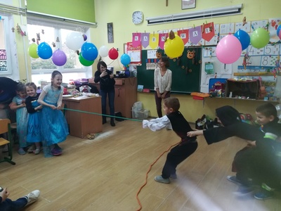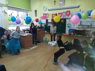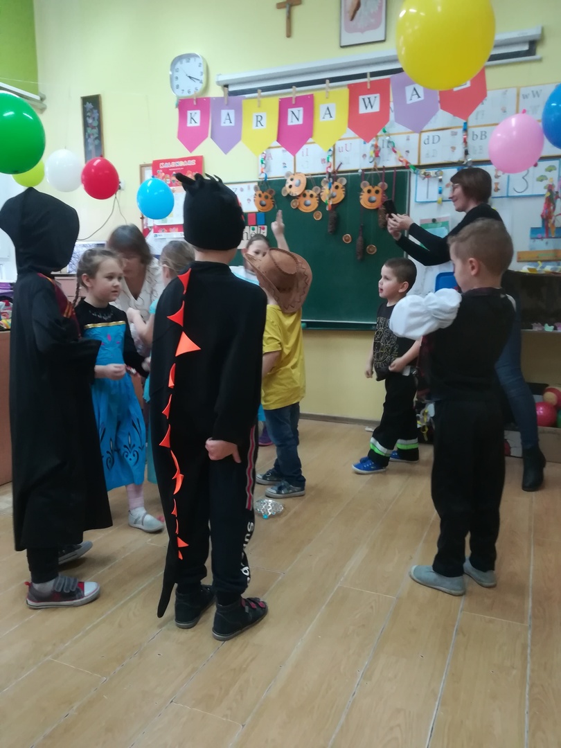 W karnawale najlepsze są bale! I jak może być inaczej! W takim towarzystwie, przy takiej muzyce radości nie było końca! Scenę zawładnęły niezwykłe postacie: Harry Potter, wampir, smok, kowboj, strażak, piękna Anna i dwie Elzy z bajki „Kraina Lodu”. Tak bawiły się dzieci z przedszkola. Na początku zaprezentowały wiersze i piosenkę, które były preludium spotkania. Karnawał w kapeluszu i wstążeczkach zaprosił do pląsów. Pani Dorota Sańko przygotowała mnóstwo zabaw i konkursów, by rozruszać, zaciekawić, a przede wszystkich uszczęśliwić swoich małych wychowanków. Był obowiązkowy taniec z balonem, przeciąganie liny i chodzenie po niej, rzucanie gazetowymi kulkami i wiele innych fantastycznych niespodzianek. Na koniec dzieci otrzymały karnawałowe prezenty. To był niezapomniany bal!